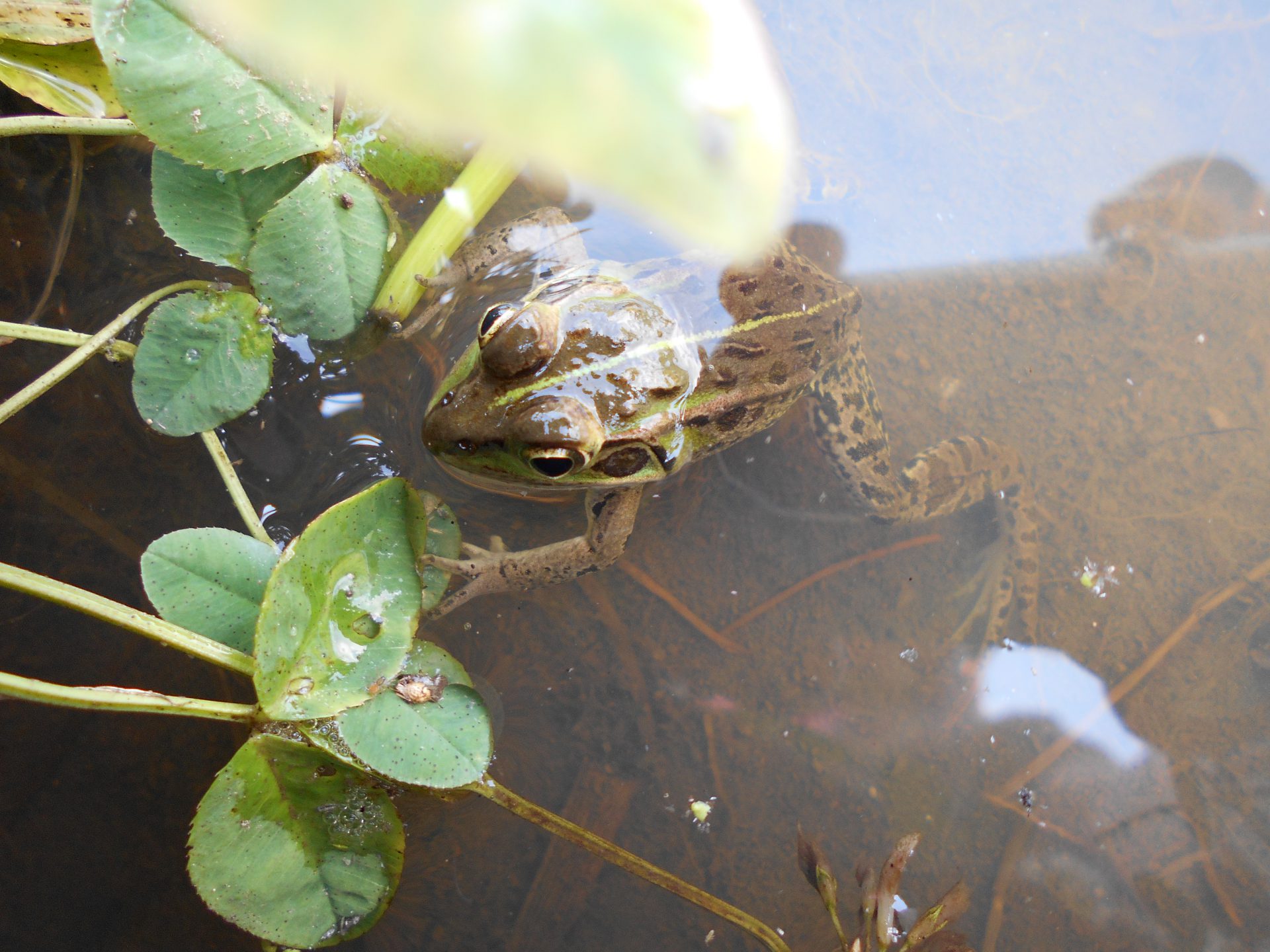 おたまじゃくしもたくさんいたけれど、トノサマガエルも2匹みつけました。