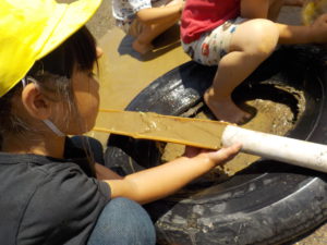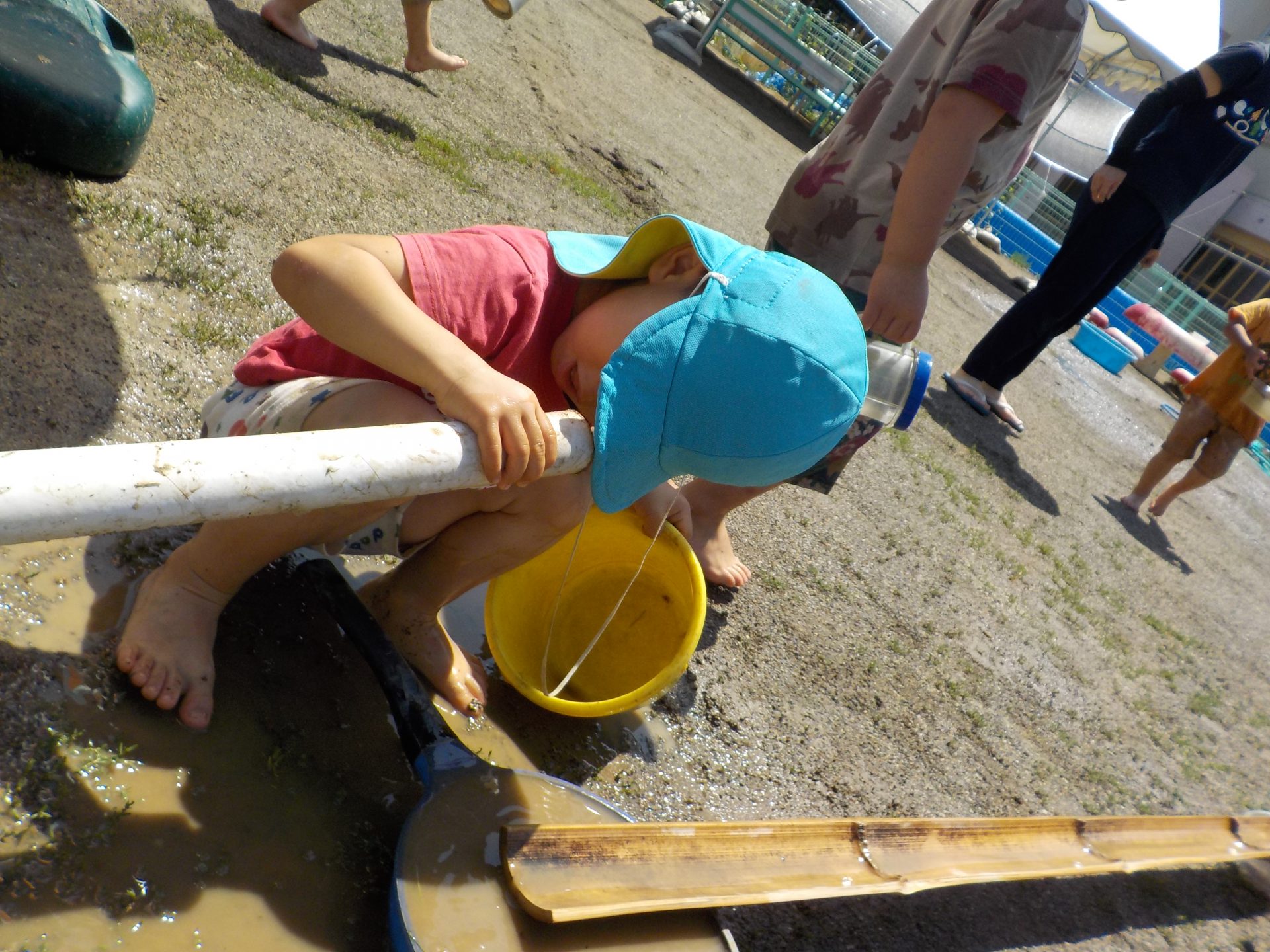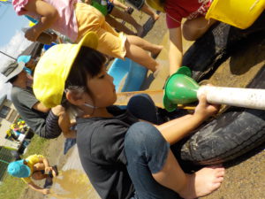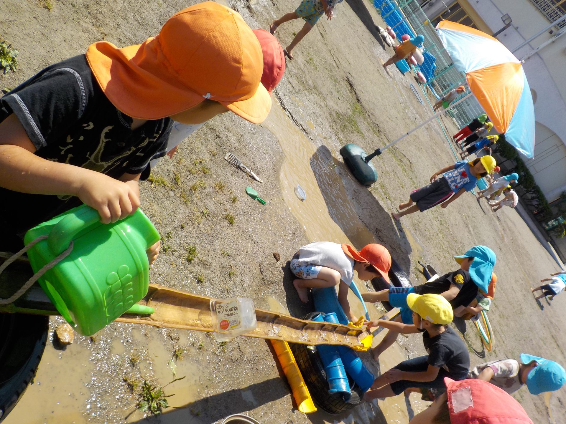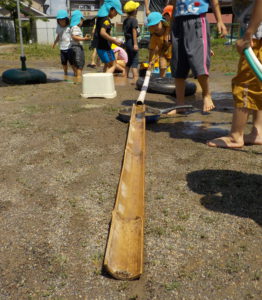 子ども達が水の流れを観察し逆流したらどうしたらよいか、ということを自分たちで解決してしまいました。