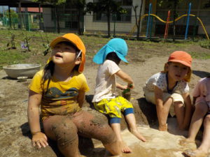 3.4.5歳児が一緒に生活する異年齢保育を行っている綿内保育園らしさが出た、どろんこ遊びでした。