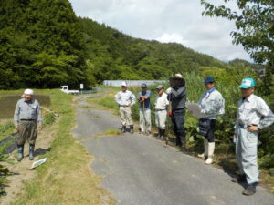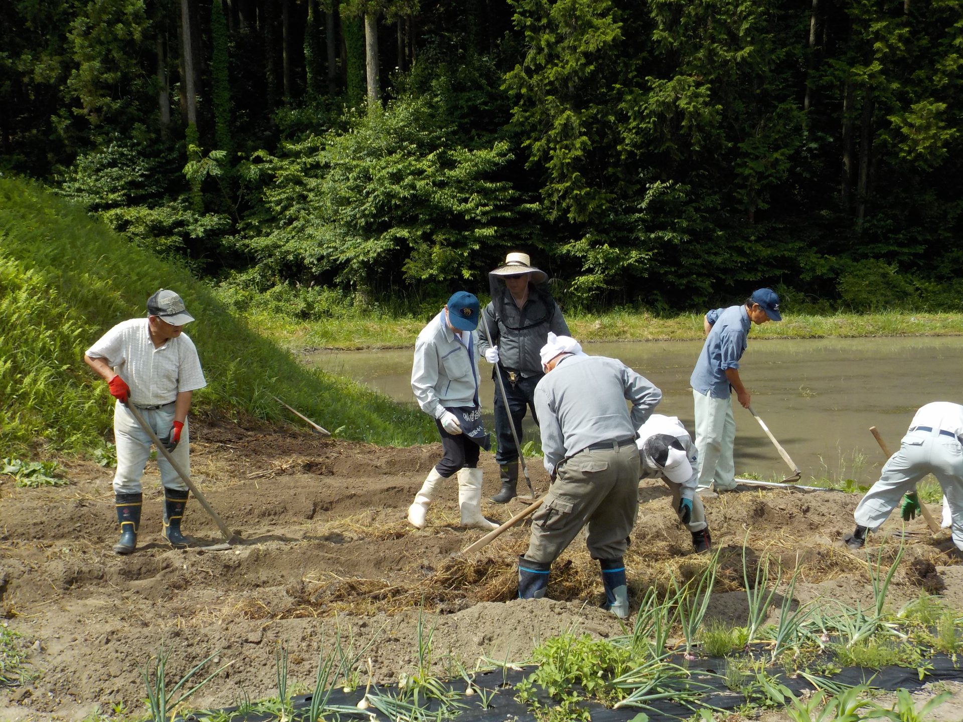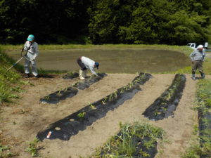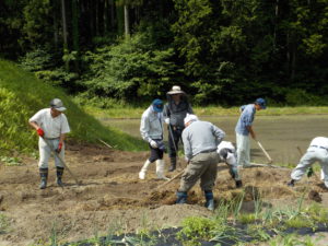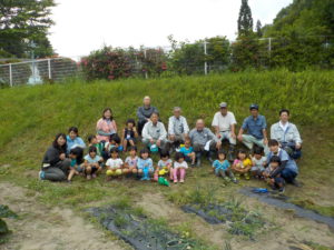 農業振興会の皆さんが来てくださって、さつま芋の苗を一緒に植えました。