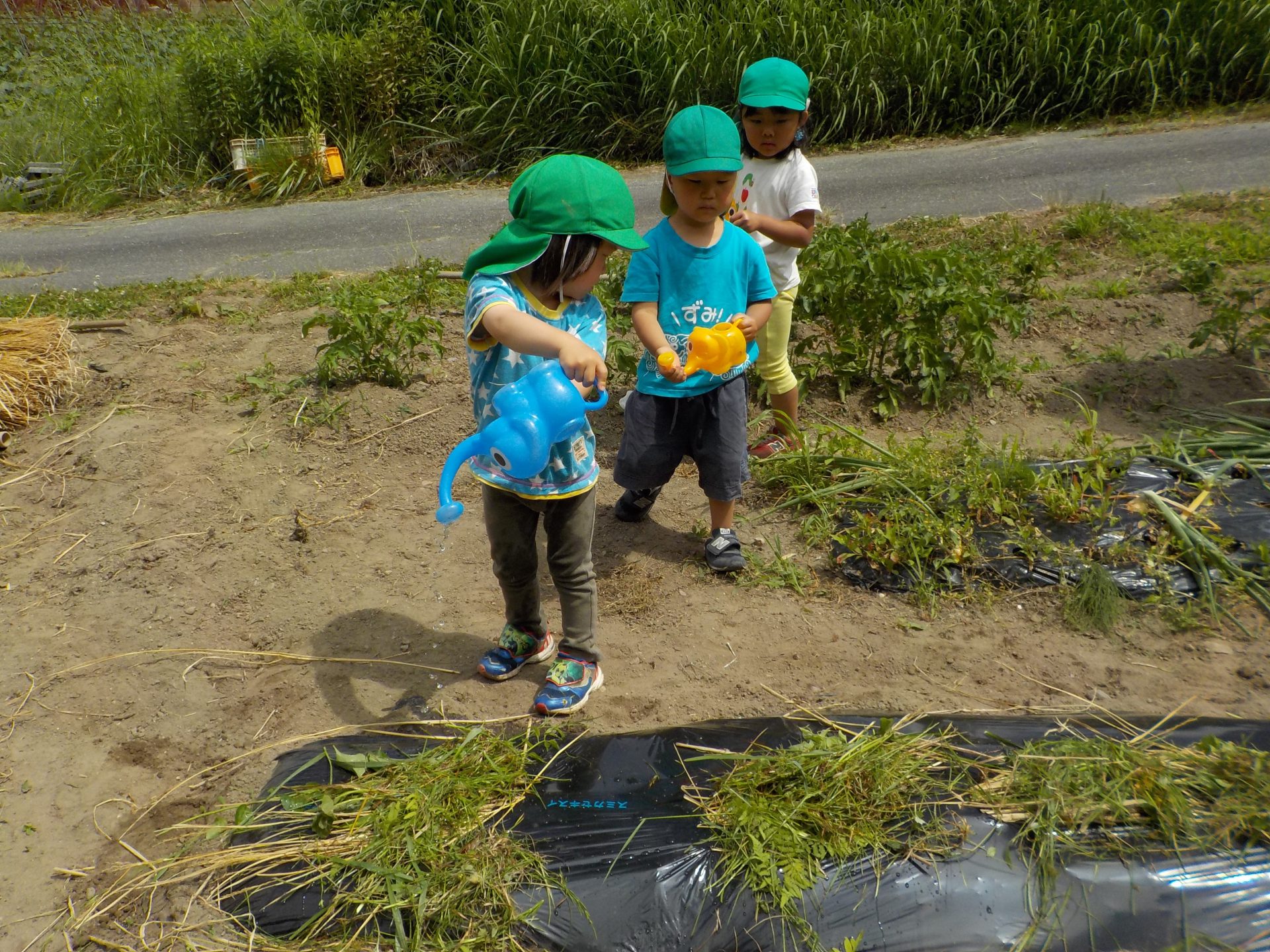 「お水もあげないと!」 「大きくなぁれ・・・」