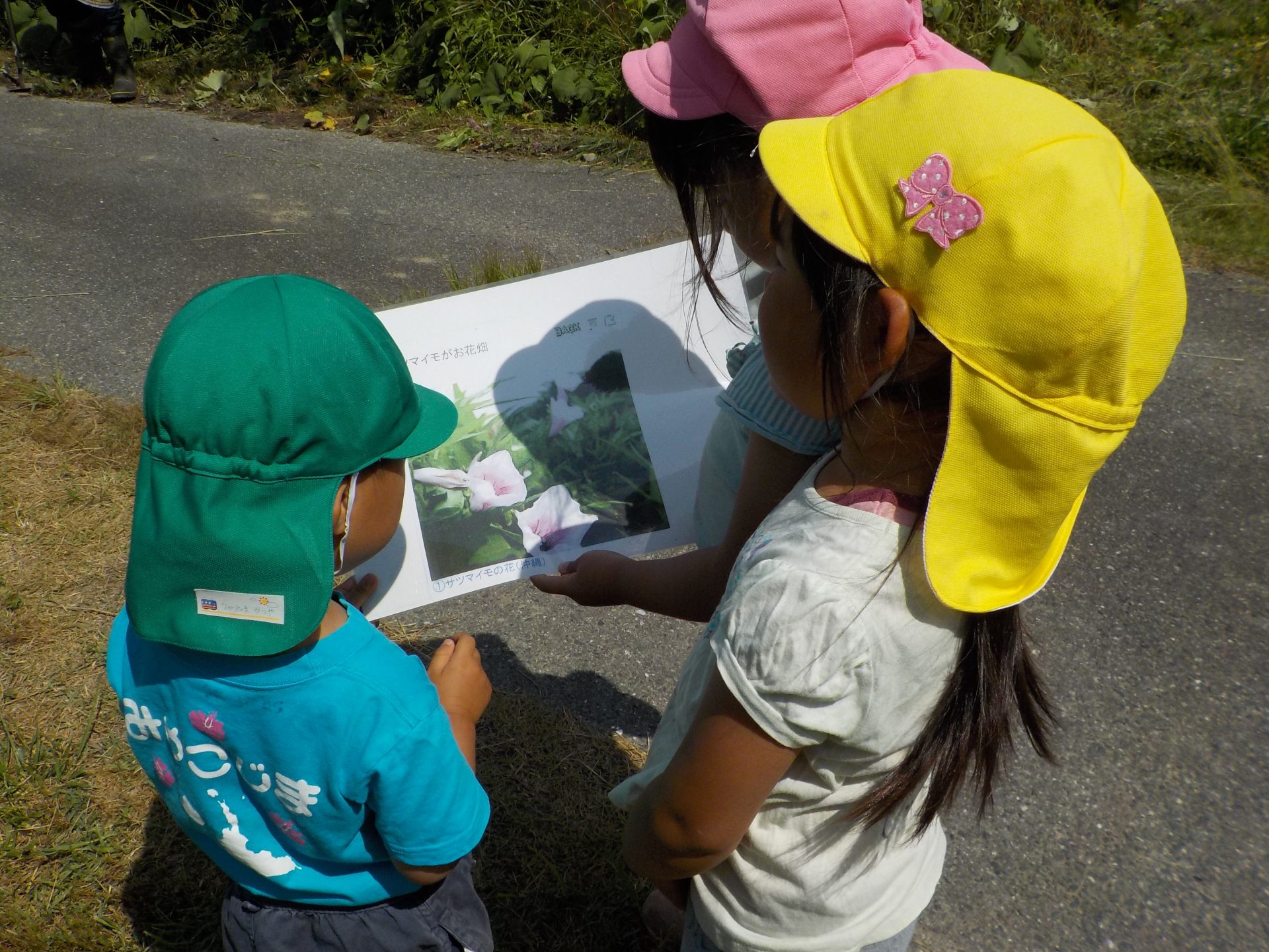「きれいなお花だね。見てみたいなぁ…」「お花の中の色がさつま芋の色と一緒だ。」