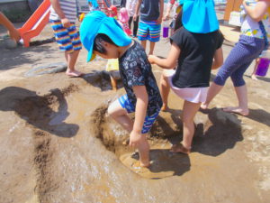 柳町保育園ではみんなが待ちに待っていた、水・泥んこ遊びが始まりました!!