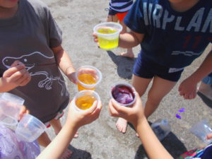 ・色んな色を混ぜて、どんな色ができるのか実験!!ワクワクと不思議を繰り返し、自分だけの色水作り