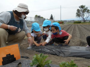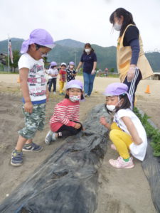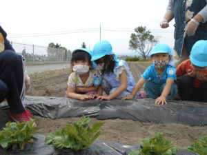 「早く大きくなるといいね!」「いっぱい食べたいな!」と、みんな生長を楽しみにしています。