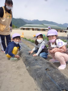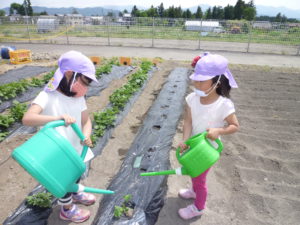 「大きくなるにはお水も上げなくちゃ!」と早速水を汲んできて、あげているお友達もいました。