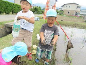おたまじゃくしとりは初めての子も多く、始めはおっかなびっくりでしたが、