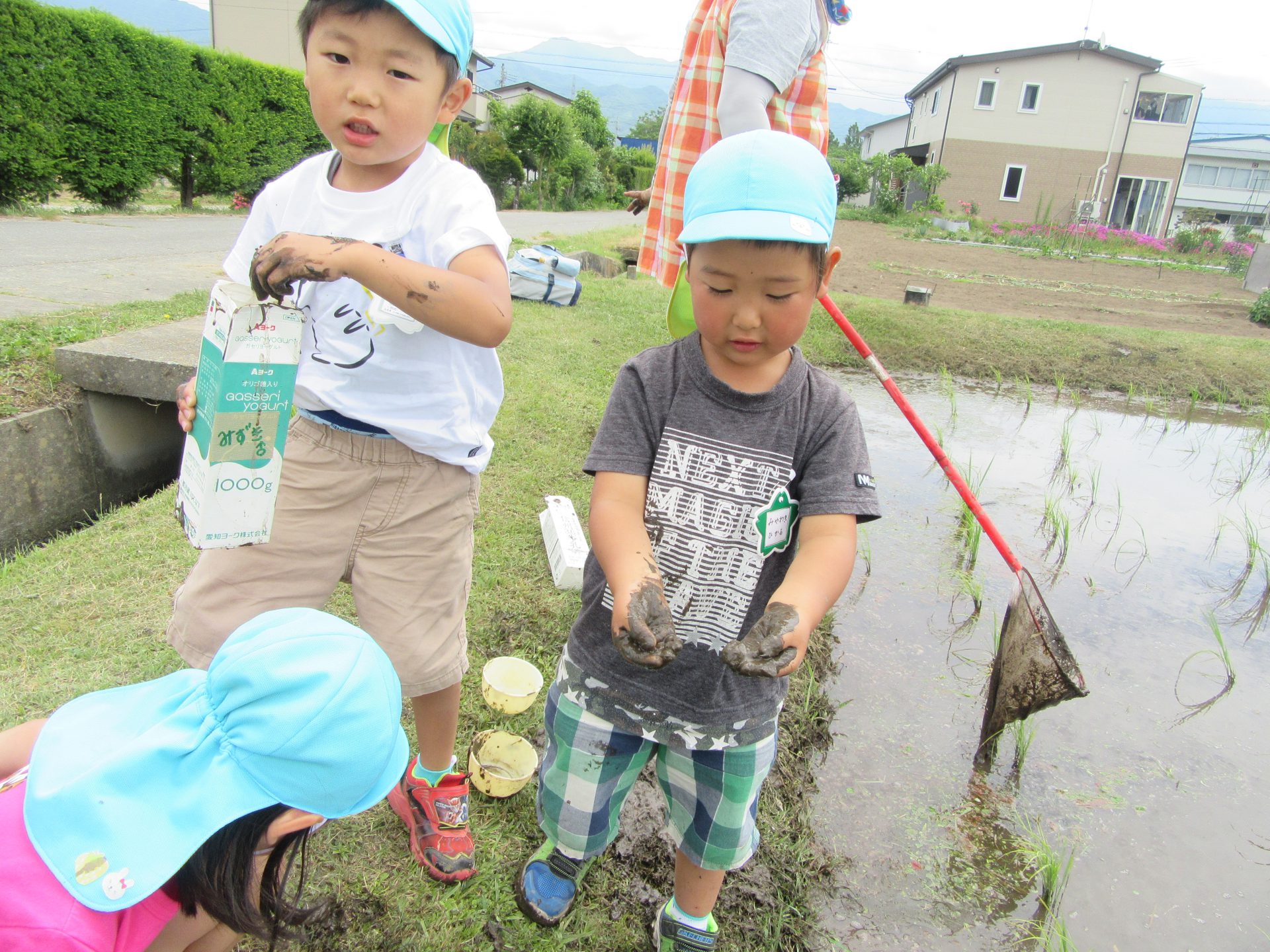 すぐに夢中になり捕ることを楽しんだり、真剣に観察する姿が見られました。