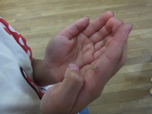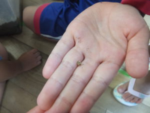 興奮しながらも、そっと優しく手のひらに乗せてみる子どもたち。