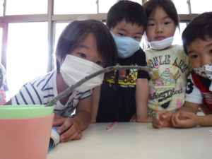 虫が苦手な子もいましたが、友だちが世話をしている姿を見たり、餌をあげたりしていくうちに興味を持って毎日楽しみに観察している姿が見られるようになりました。苦手な虫にも少し気持ちが向いてきたのではないかと感じます。