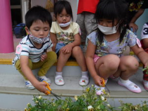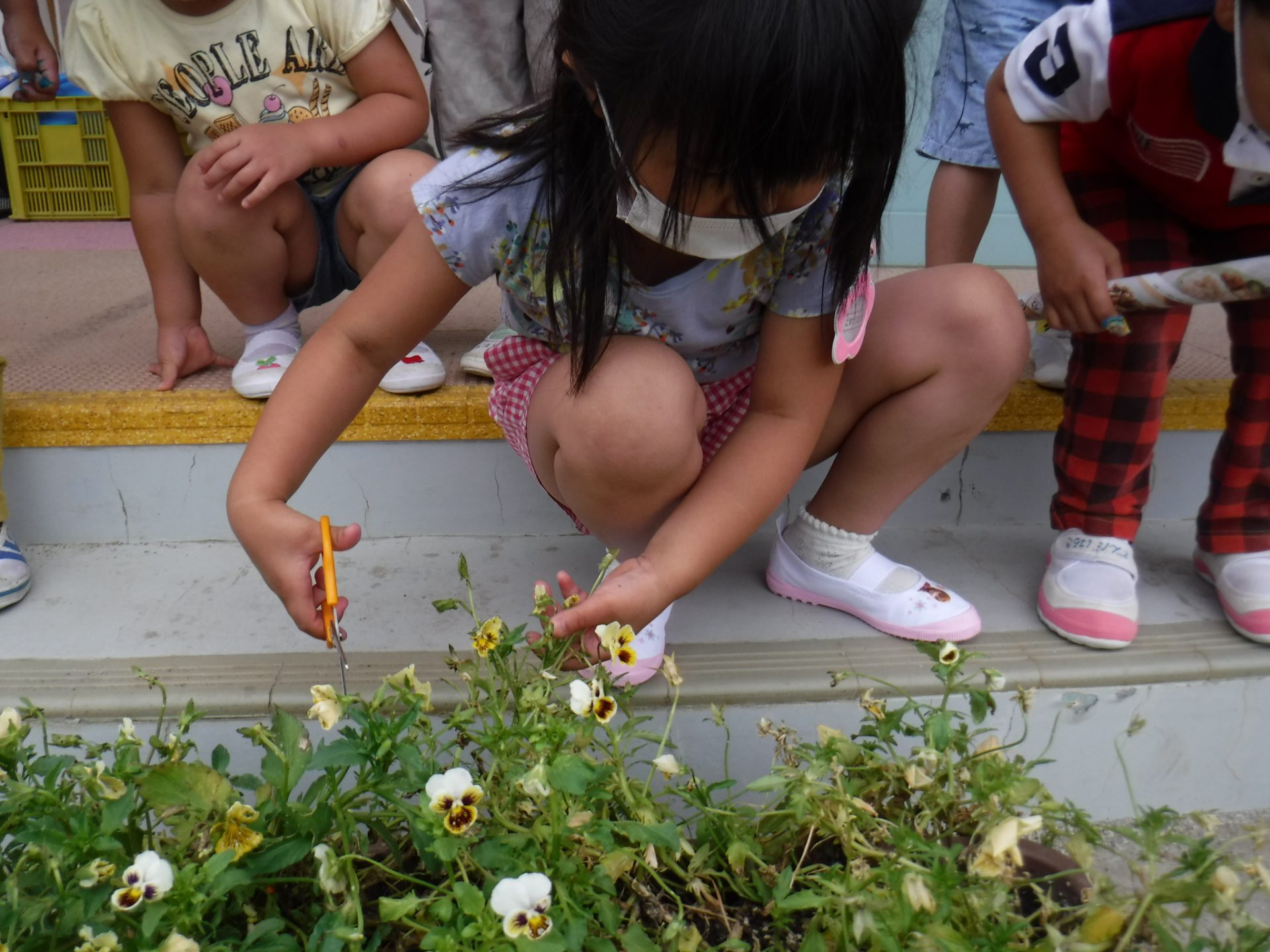 クラスでお世話をしよう!ということになり、幼虫が食べるパンジーの葉はその日のお当番があげることに。当番の子は張り切って用意していました。