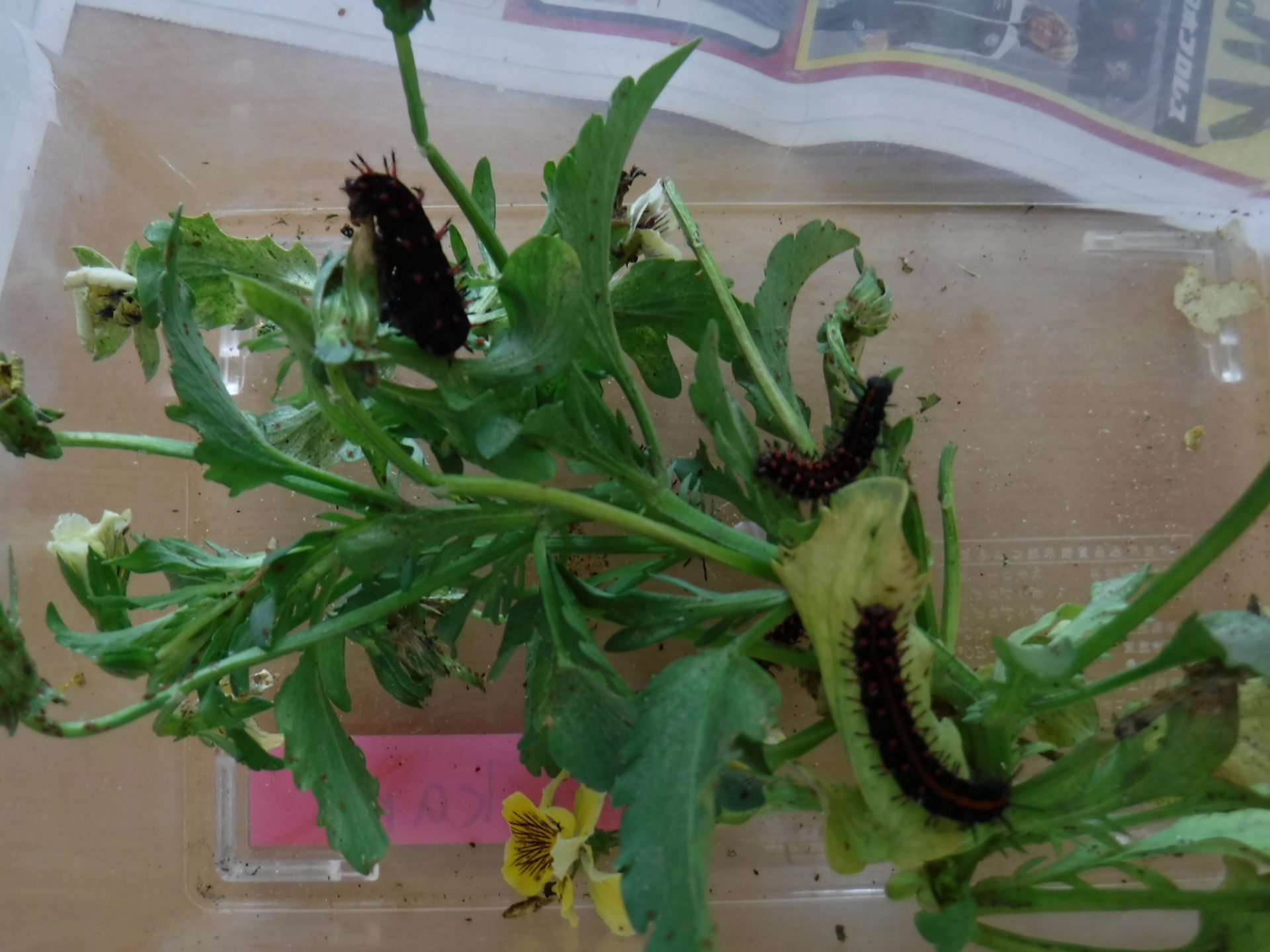 いつものパンジーではなく、違う葉っぱを入れてみたところ「やっぱりパンジーの葉っぱしか食べないね。」「だからパンジーのお花のところにいるんだね。」