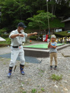 今年も、魚釣り体験やローラーすべり台、アスレチックで遊び、お昼には釣った魚を塩焼きにしていただき、食べてきました。