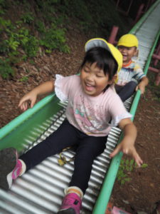 青木村で一番長いと言われている(笑)ローラーすべり台も楽しみました。その後、雨が降ってきたのでアスレチックの予定を変更し、戻りました。