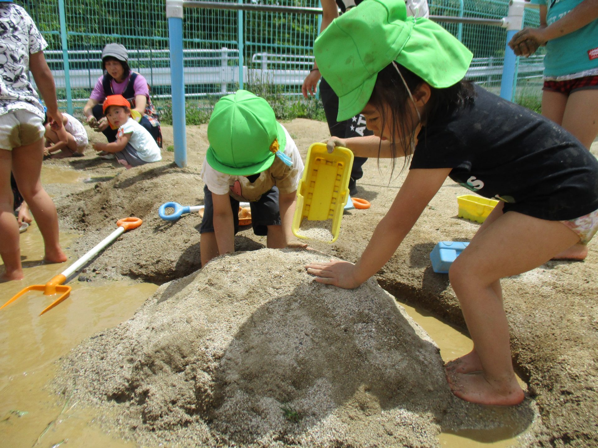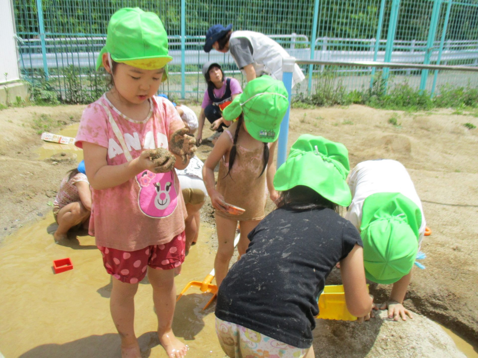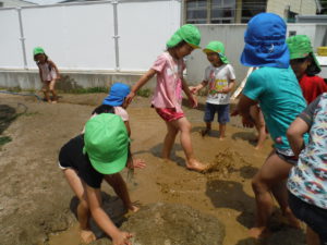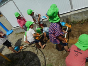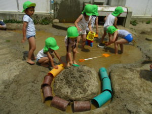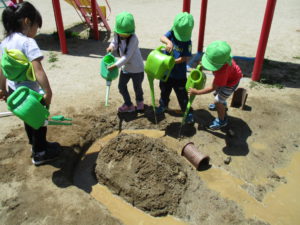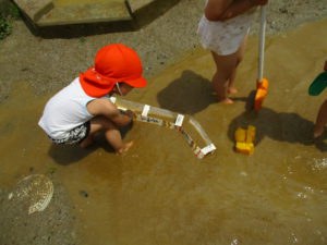 あそびながら水の感触に気付き、色々なことを試し、発見していってほしいです。