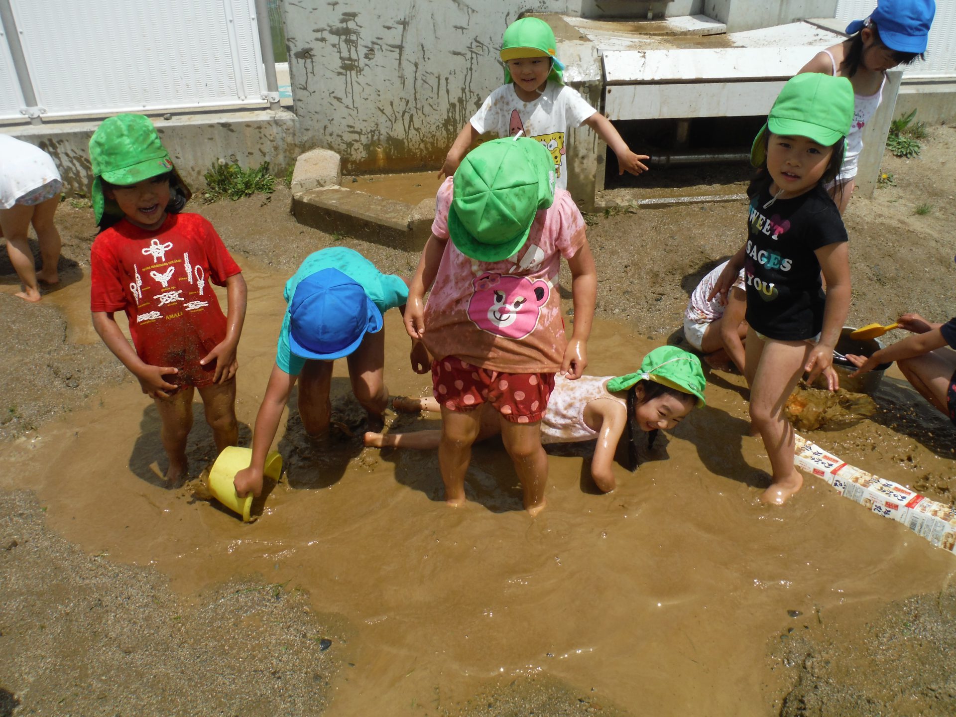 友だちいっぱい! すると・・・だんだんあそび方もダイナミックになってきました。みんな どろんこ!