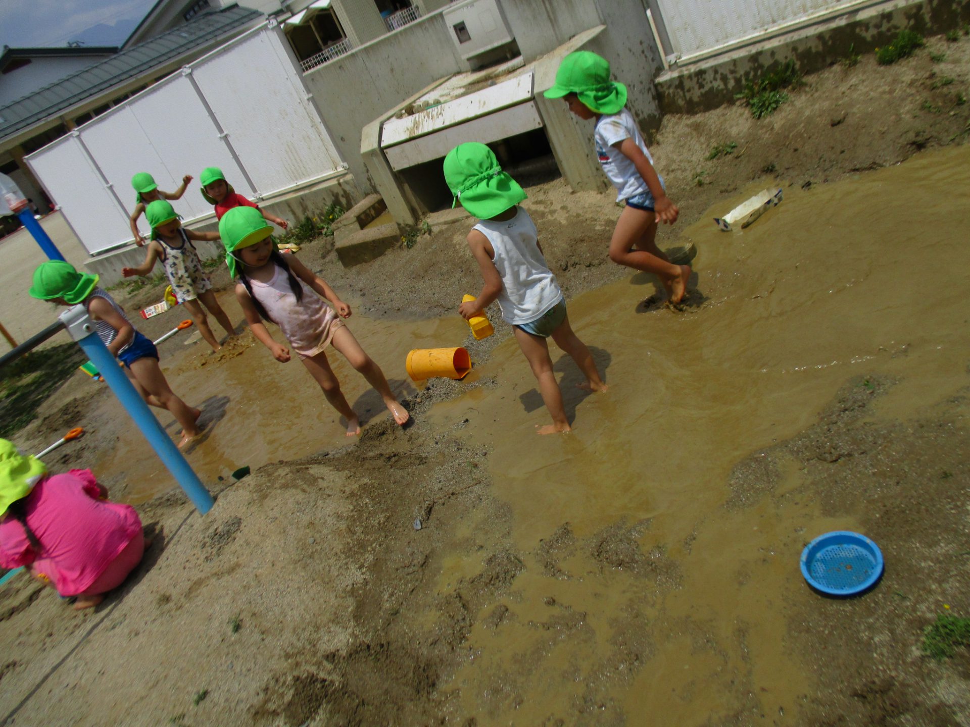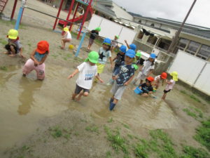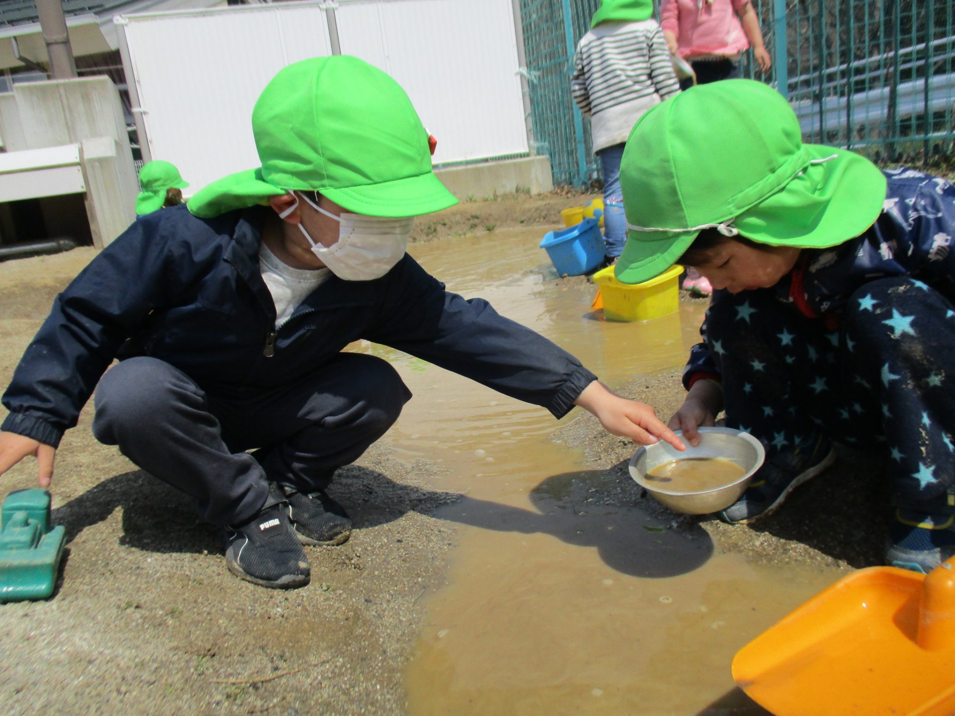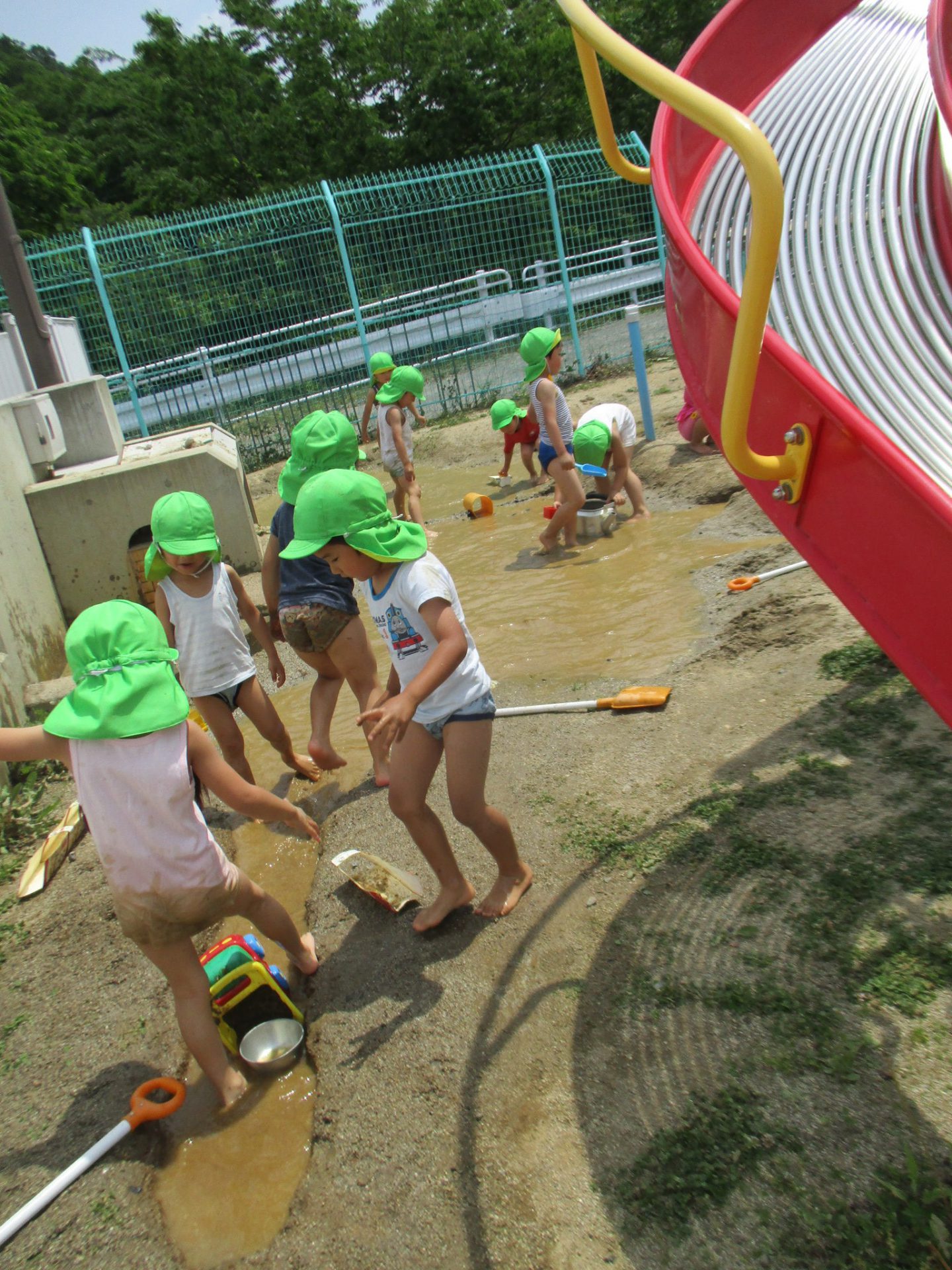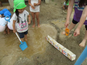 雨が降った次の日は水がいっぱい!! みんな引き寄せられるように、あそびだします。