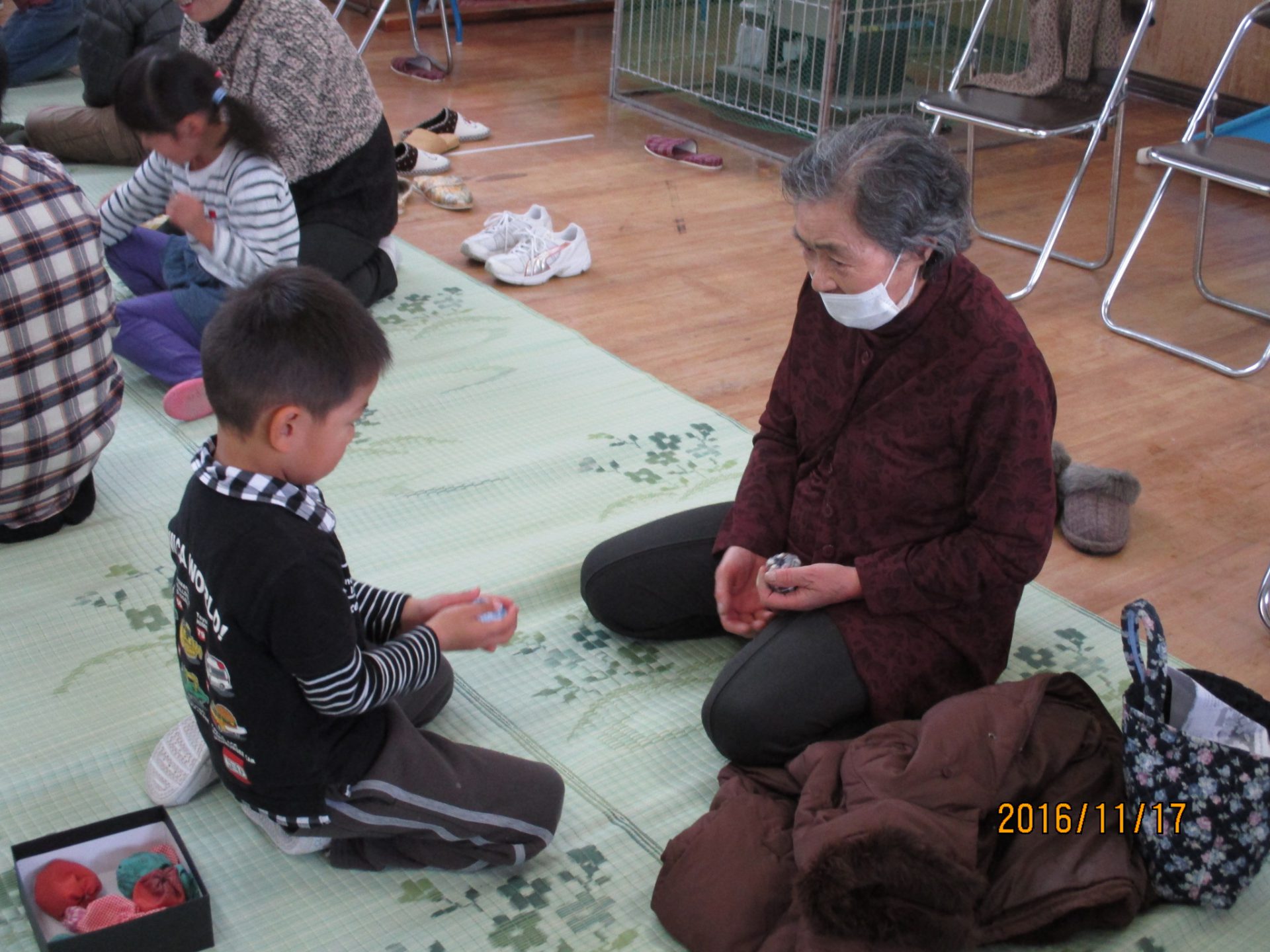 「こういうのができるよ。」「おばあちゃんすごーい!」「お手玉の歌があるんだよ。」「もう一回歌って!」