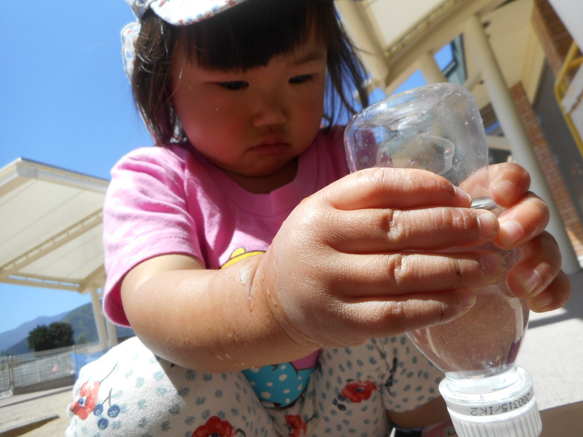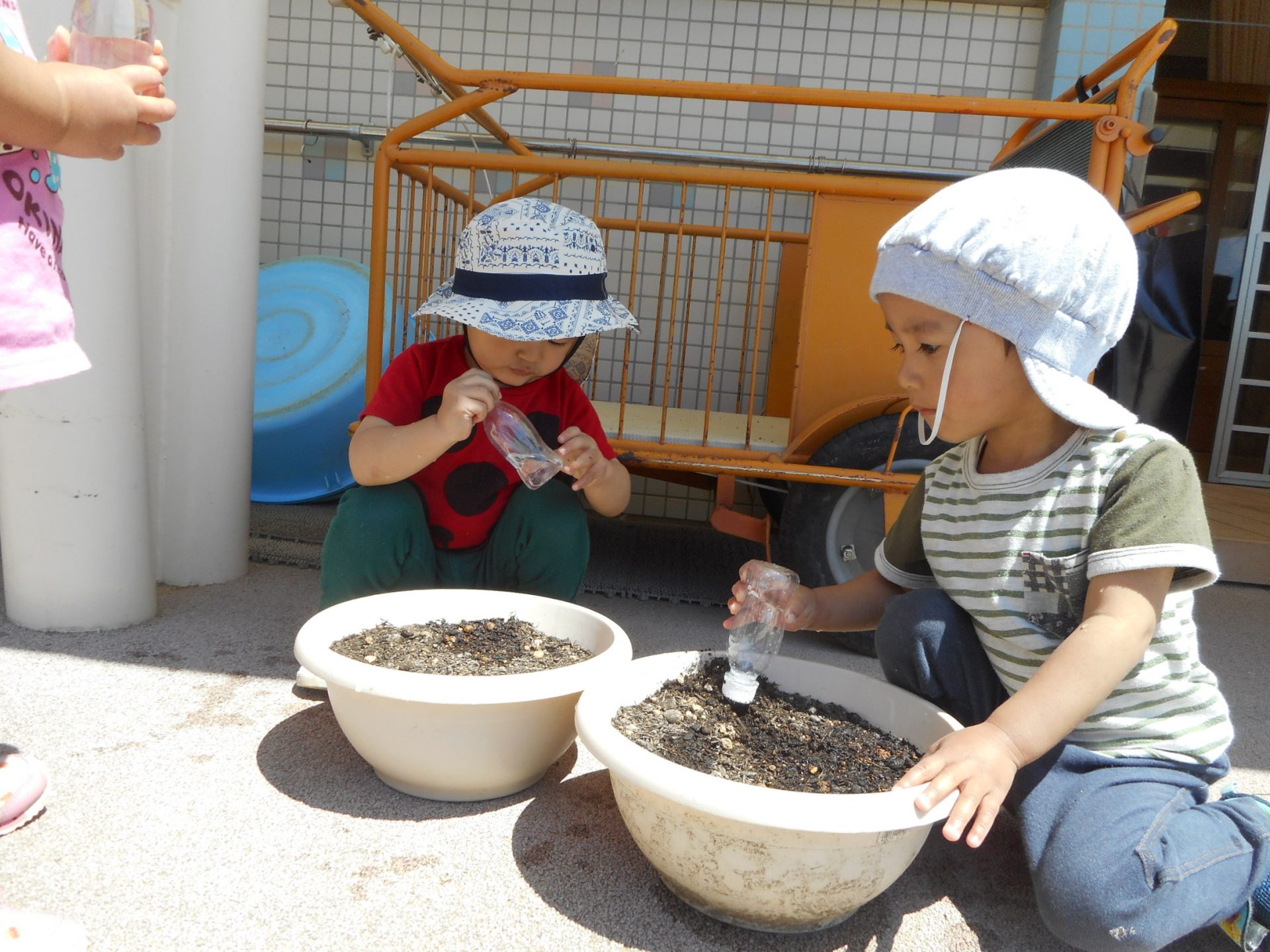 保育士がお水をやっているのをみて真似して空容器で水くれをお手伝いしてくれました。