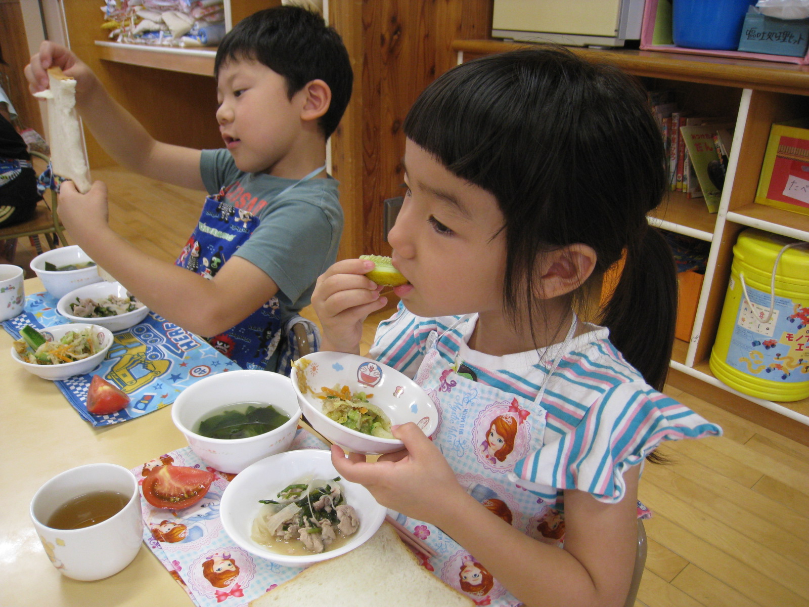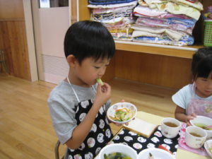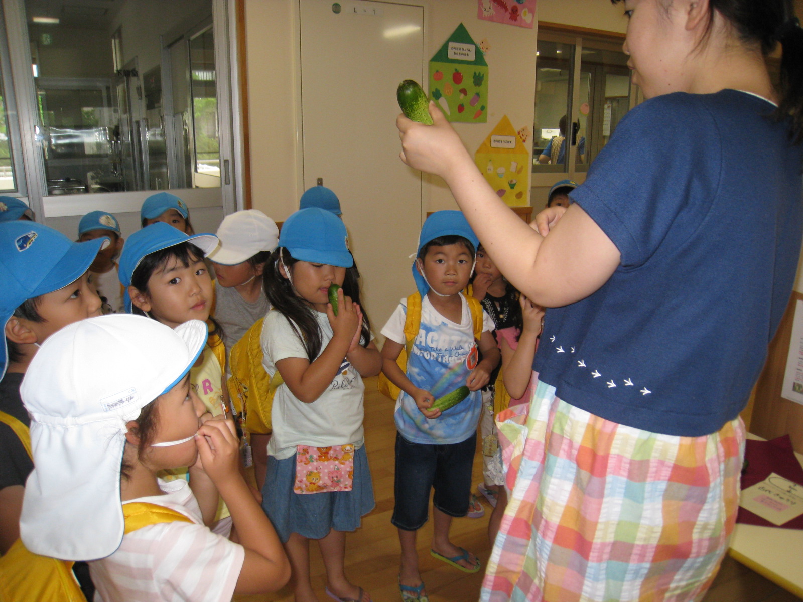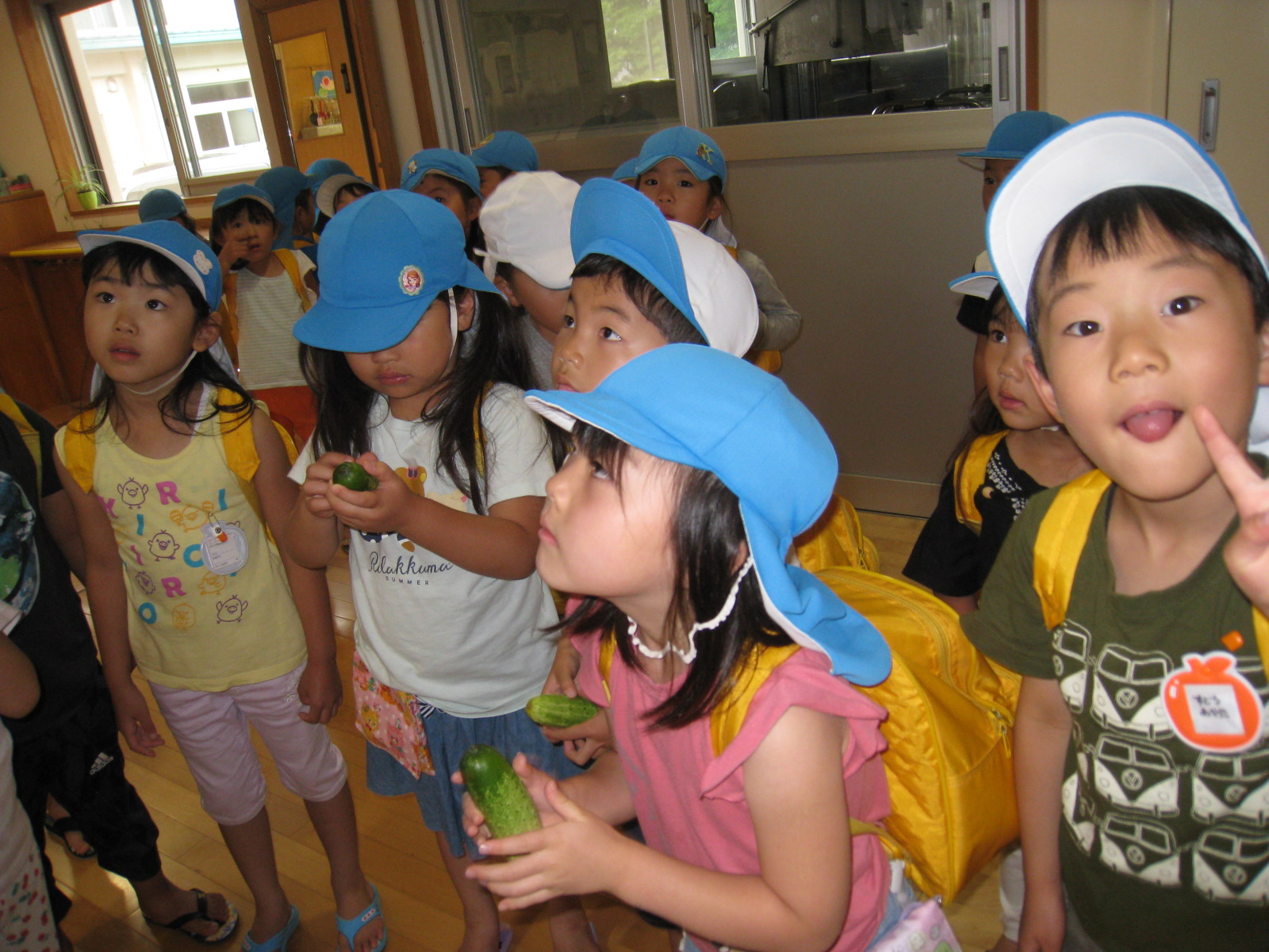 「出来ました!古太きゅうり。見てください!」と年長担任。