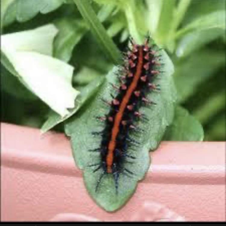 園庭の花壇に咲いているパンジーに毛虫(幼虫?)を発見したので、