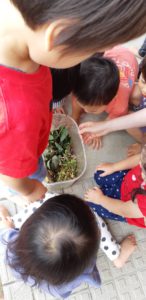 園庭にはたくさんの虫がいて、つかまえて楽しんでいます。