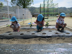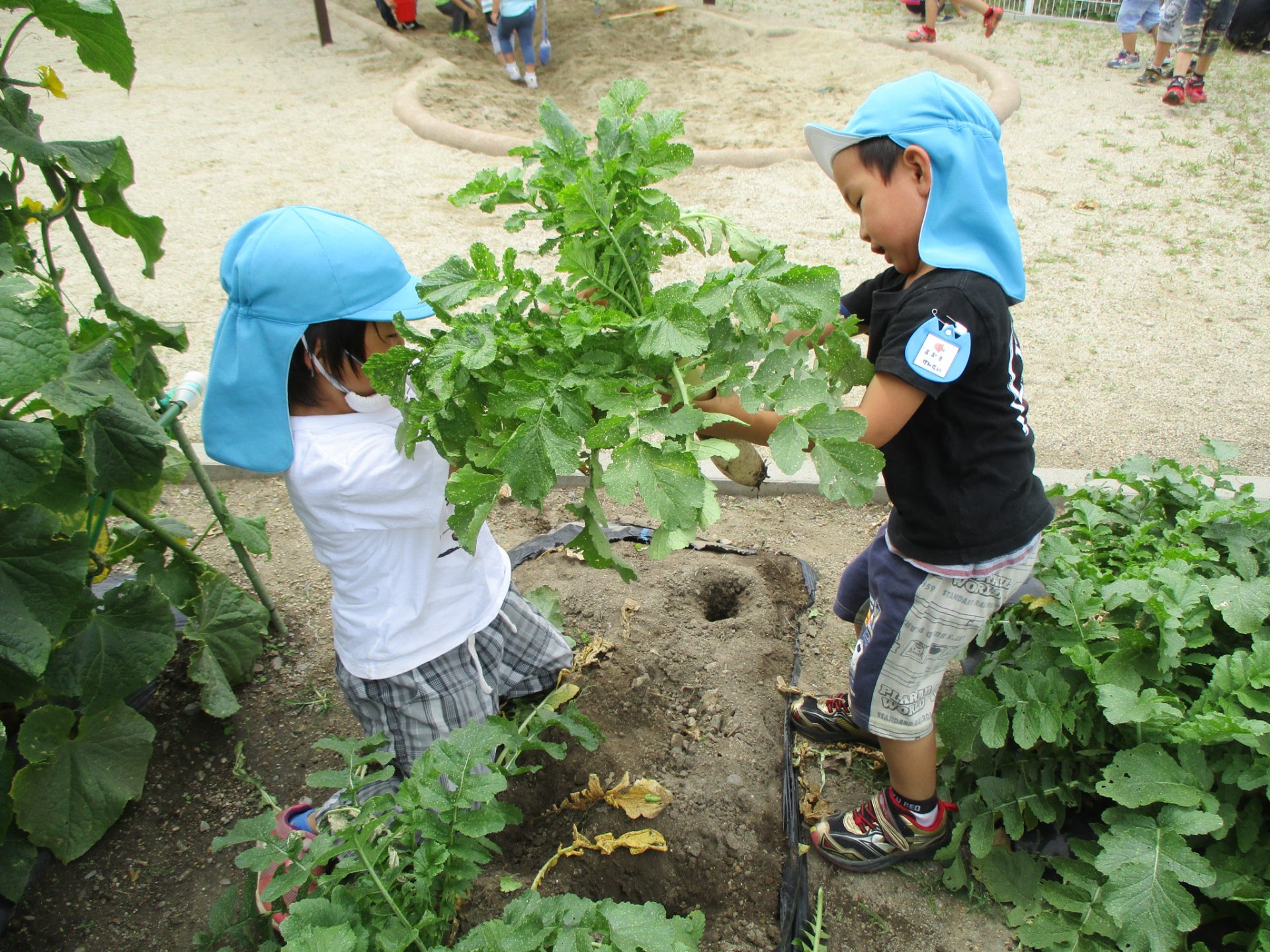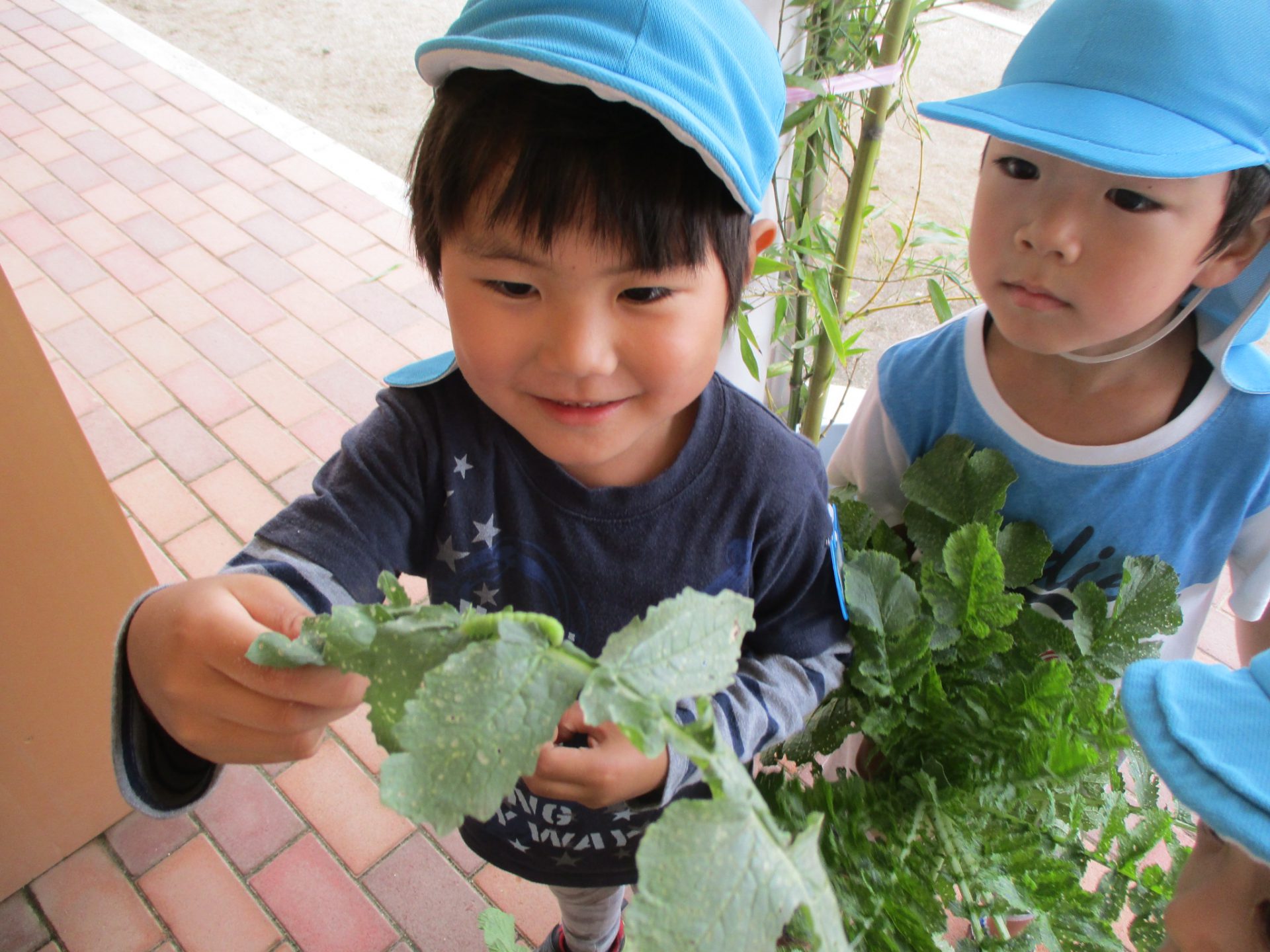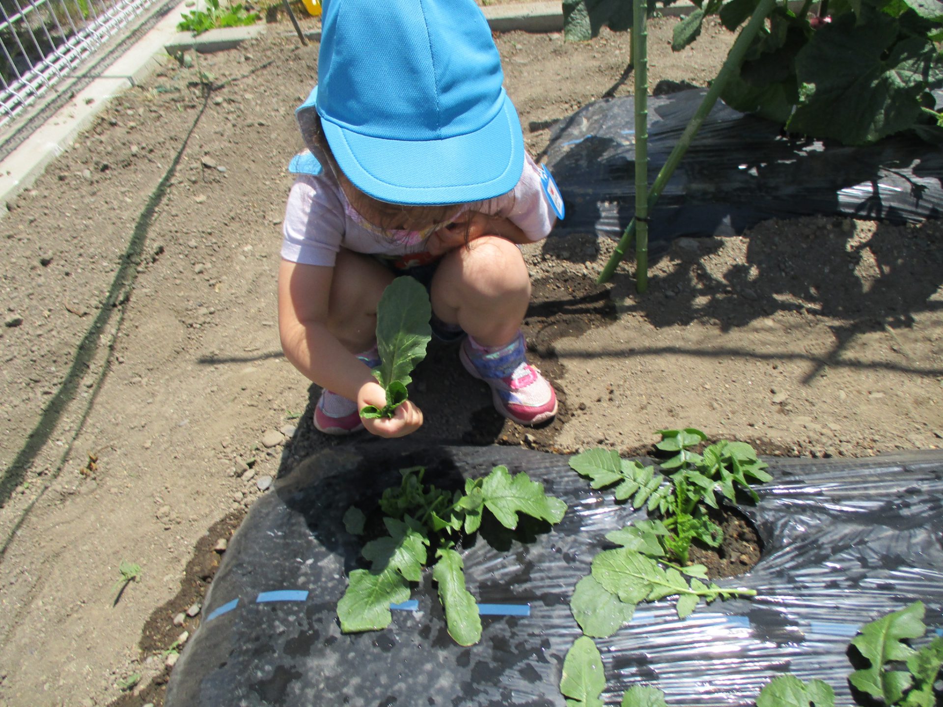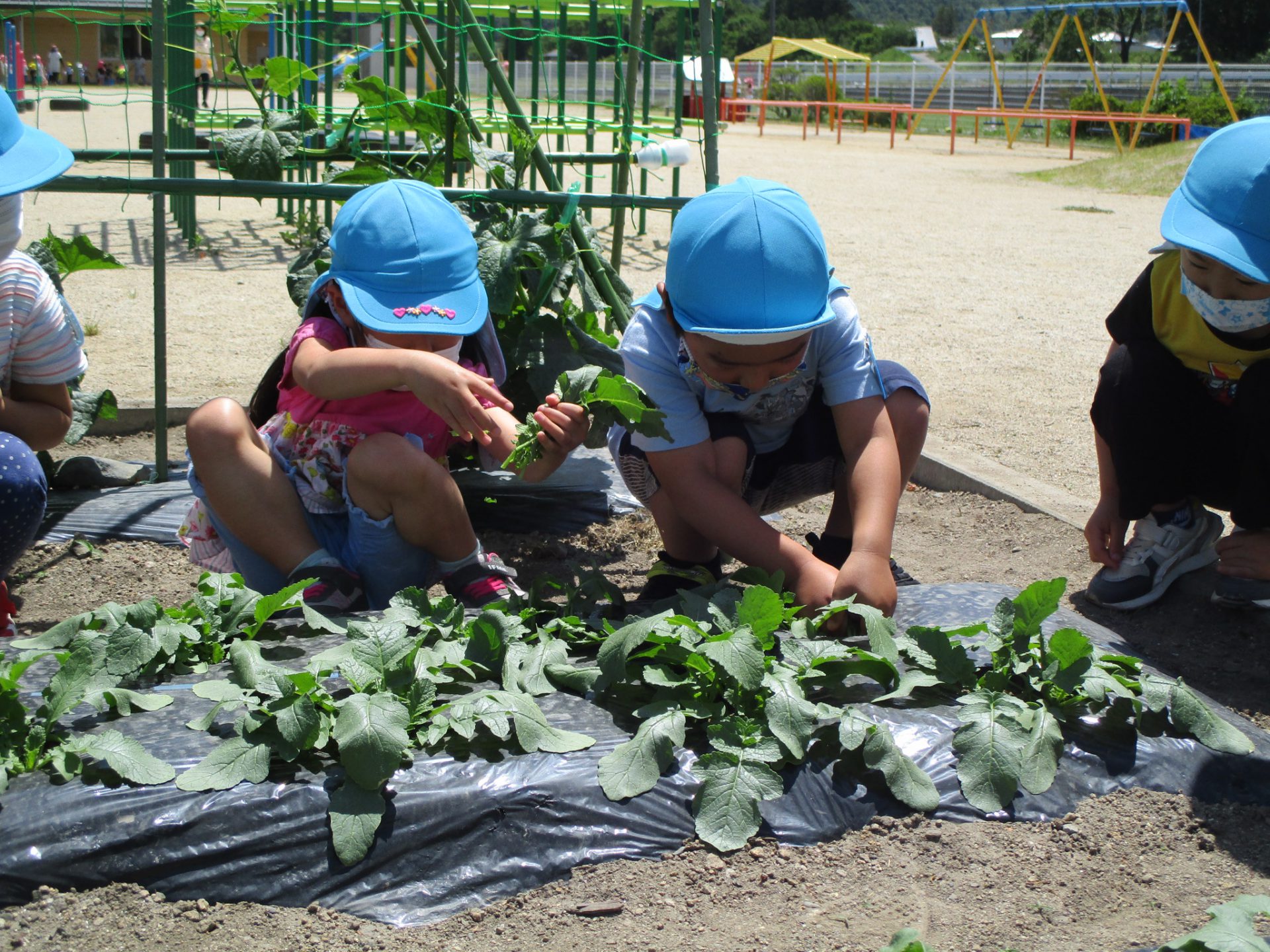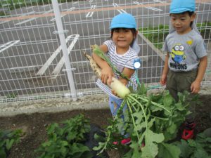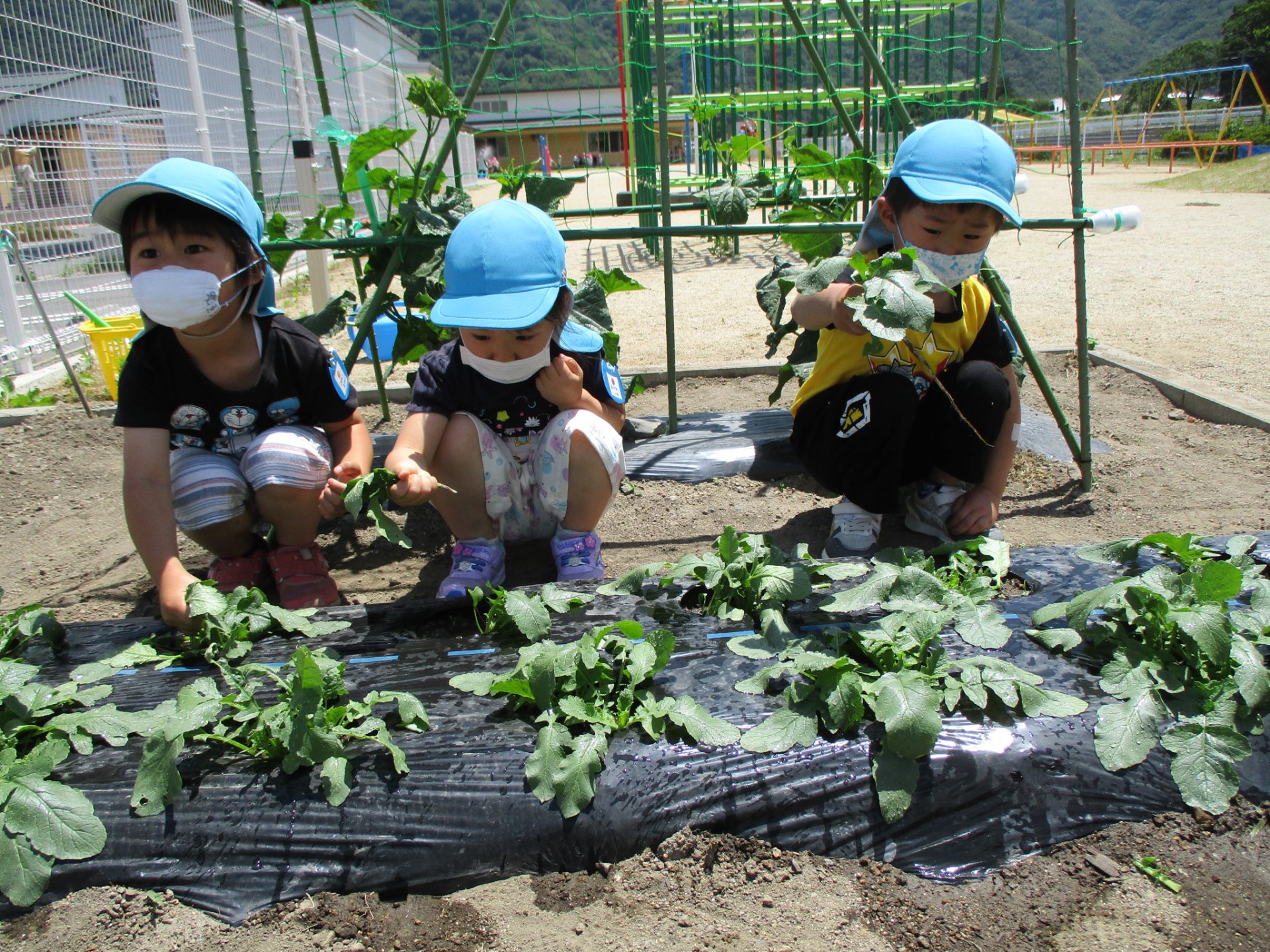 普段、何気なく口にしている食材も1から作っていくことで興味を持ち食に対する意識も変わってくるのかなと思います。また、畑に行くようになって自然の生き物を見つけたり触れたりすることが多くなりました。世話をしたり成長を観察したり収穫の喜びや生き物の尊さなどこれからも感じていってほしいなと思います。