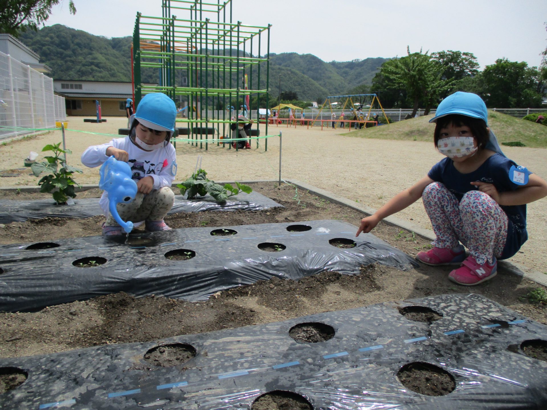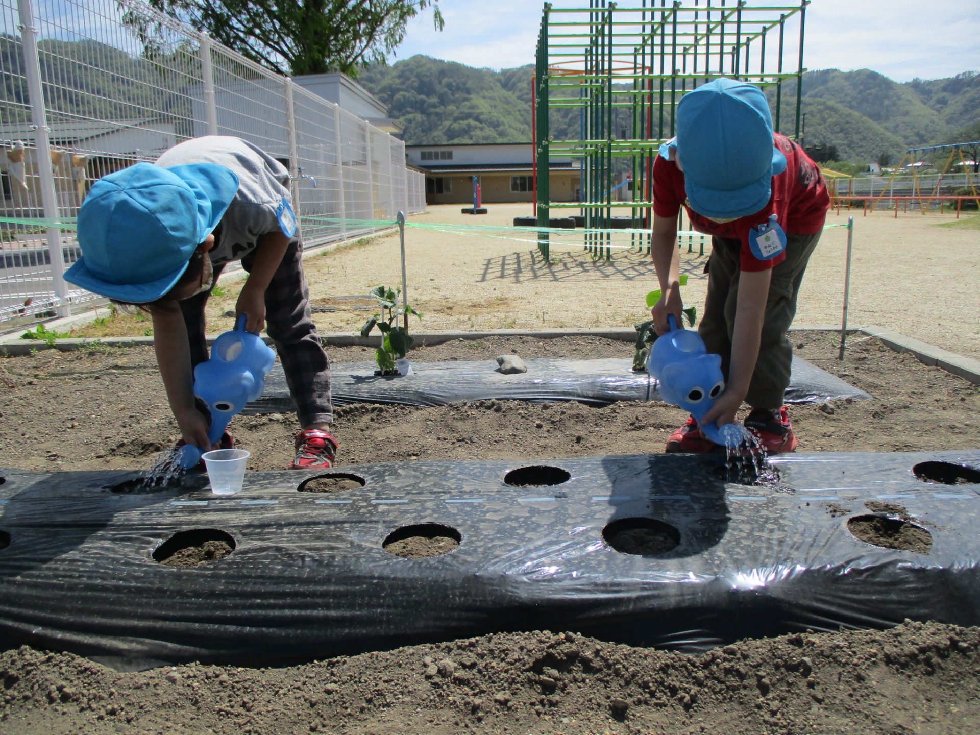 「おおきくなあれ、おいしくなあれ!」 水やりをしました。