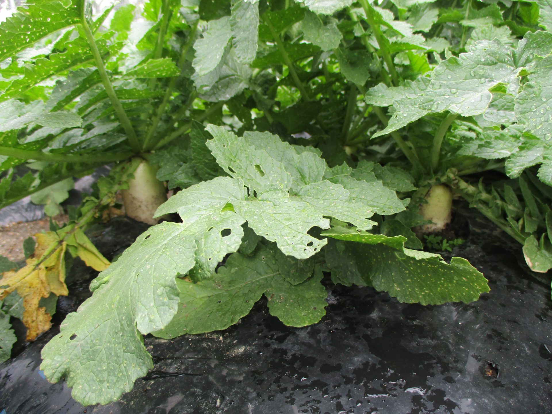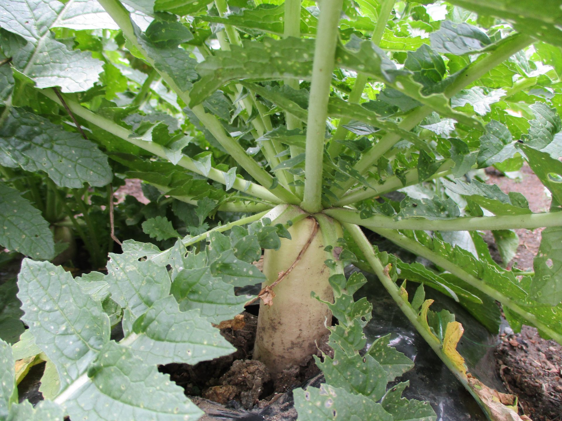 鼻を近づけて「この葉っぱ大根のにおいするかな?」