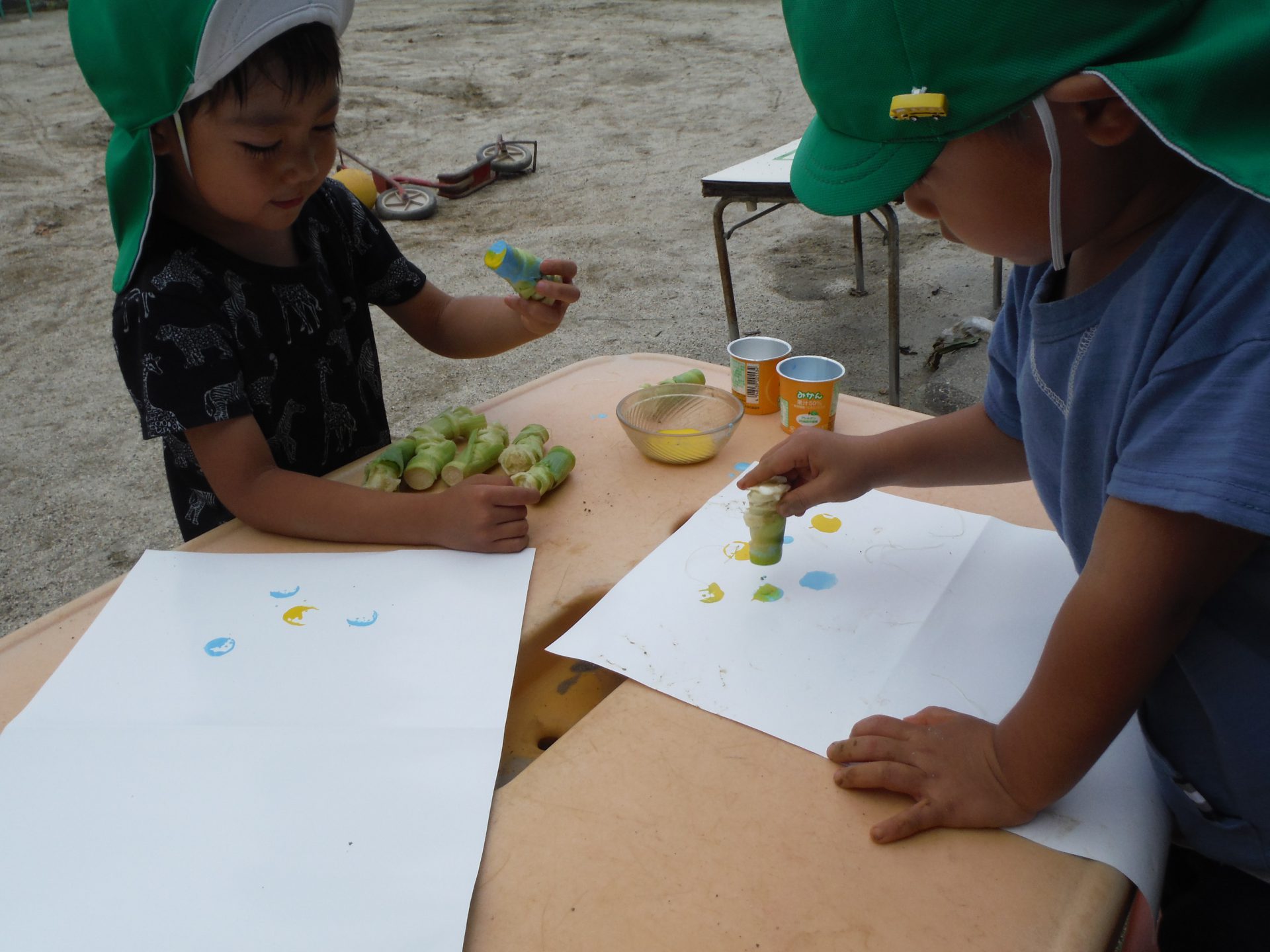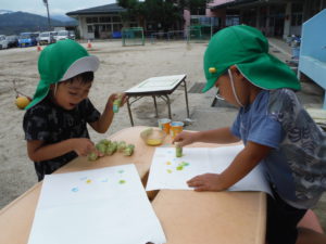*とうもろこしの茎は硬くてスタンプがいっぱいできたよ。