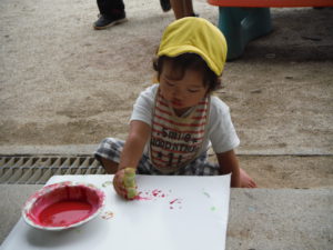 それを見ていた未満児のお友達、真似してペタペタ・・・長い間座ってスタンプ遊びをしていました。