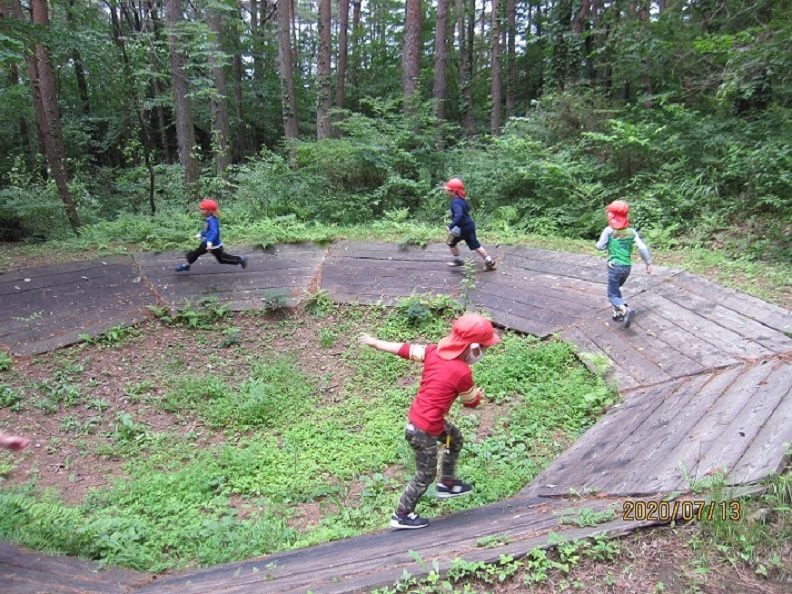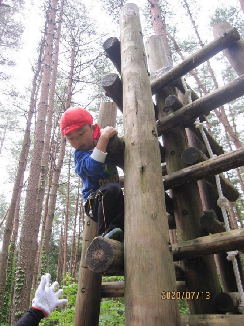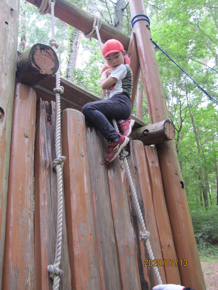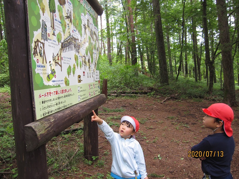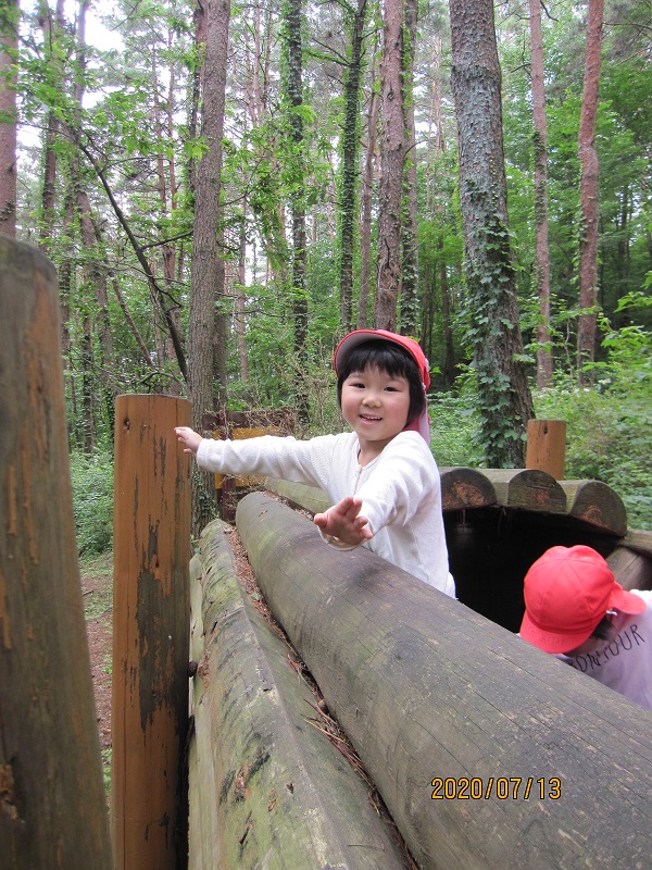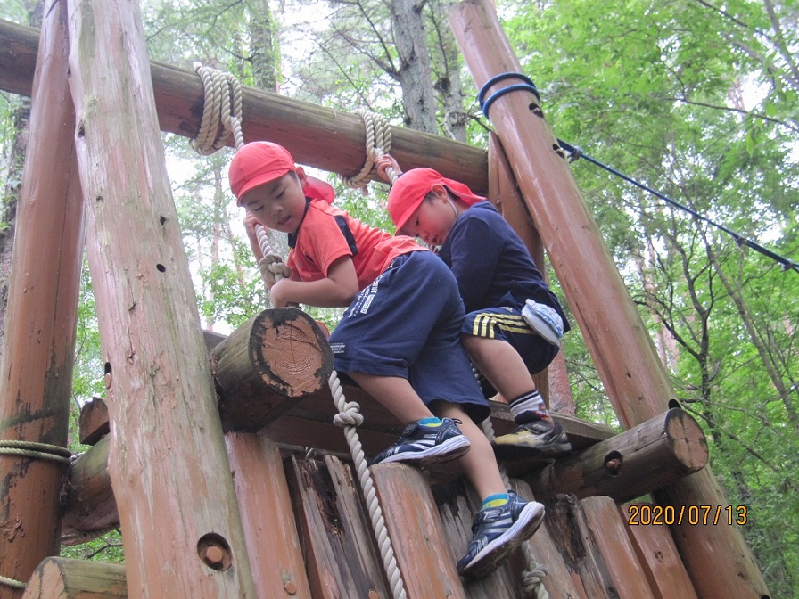 梅雨の晴れ間、年長児21名がながた自然公園アスレチックに行きました。