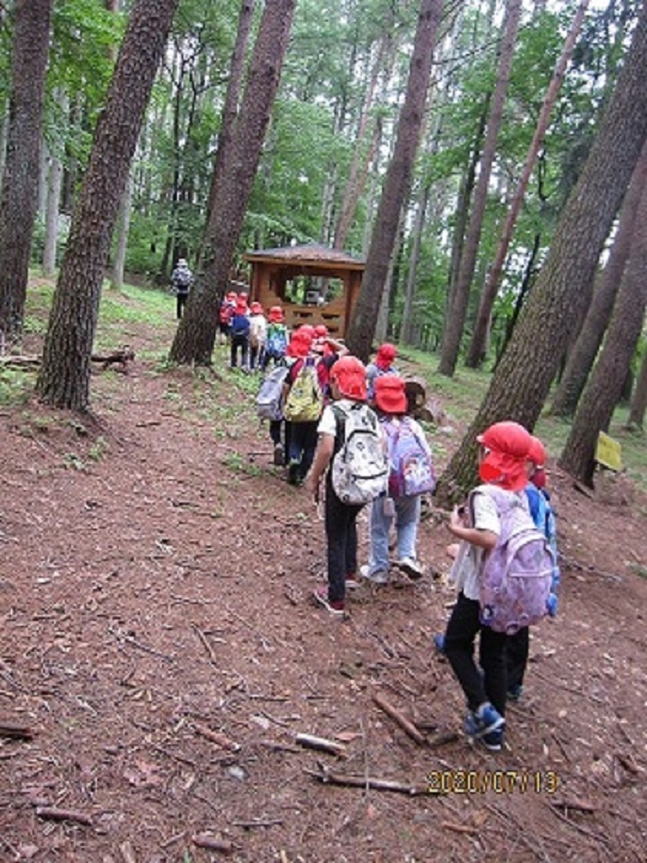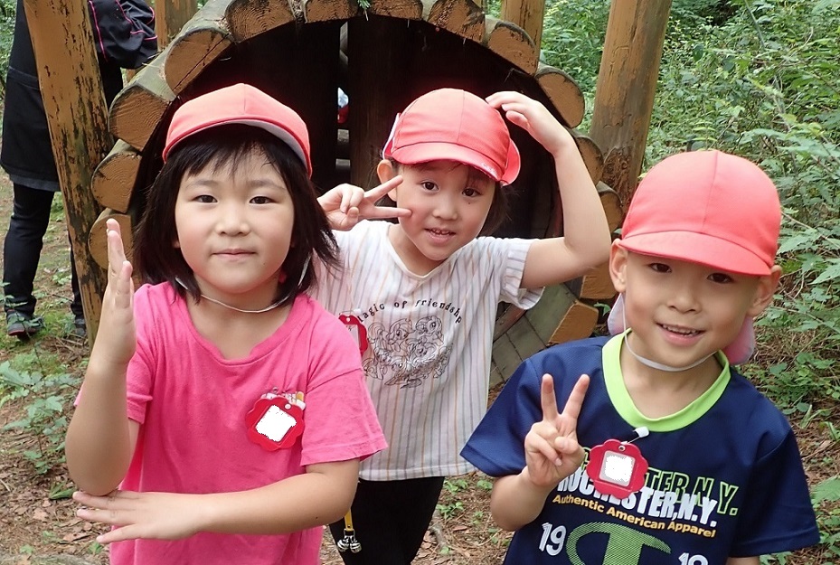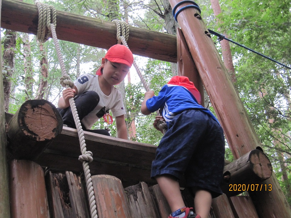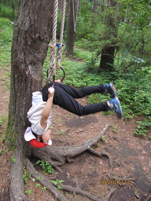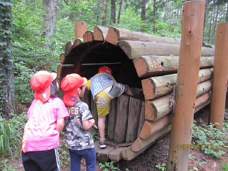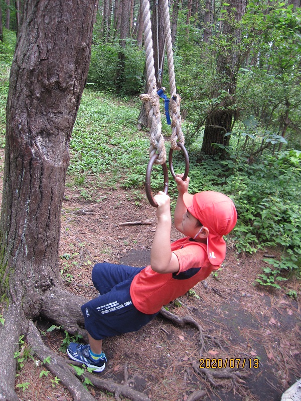梅雨の晴れ間、年長児21名がながた自然公園アスレチックに行きました。