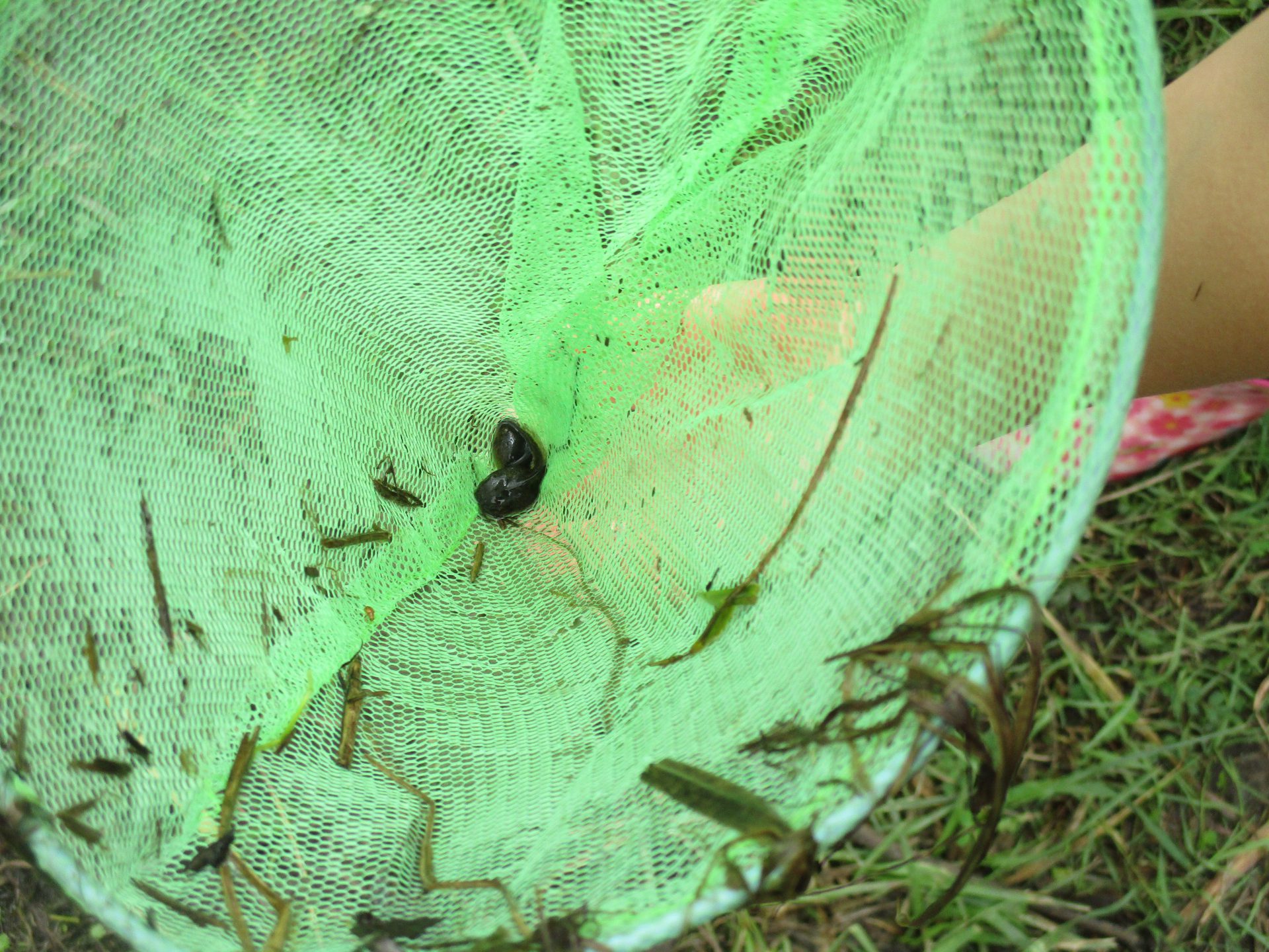 網の中におたまじゃくしが入っていました。