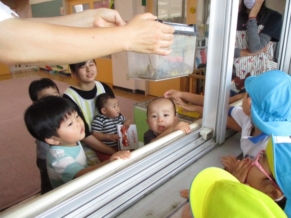 他のクラスの友だちや先生にも見せたり、放すことを教えてあげていました。
