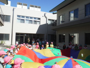 運動会のオープニングでのバルーンを年長児が披露しました。