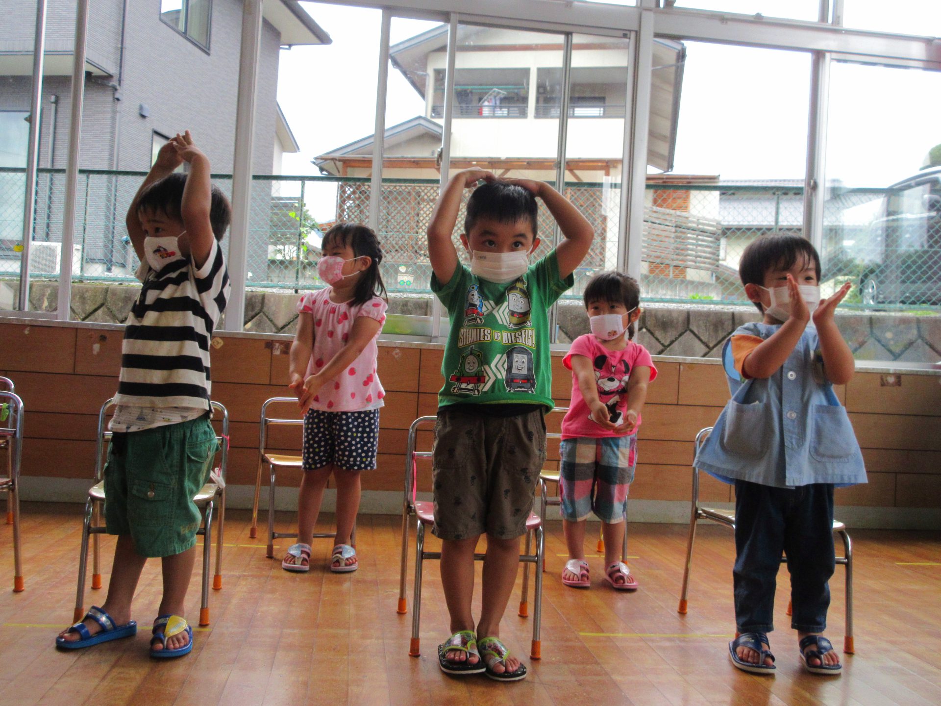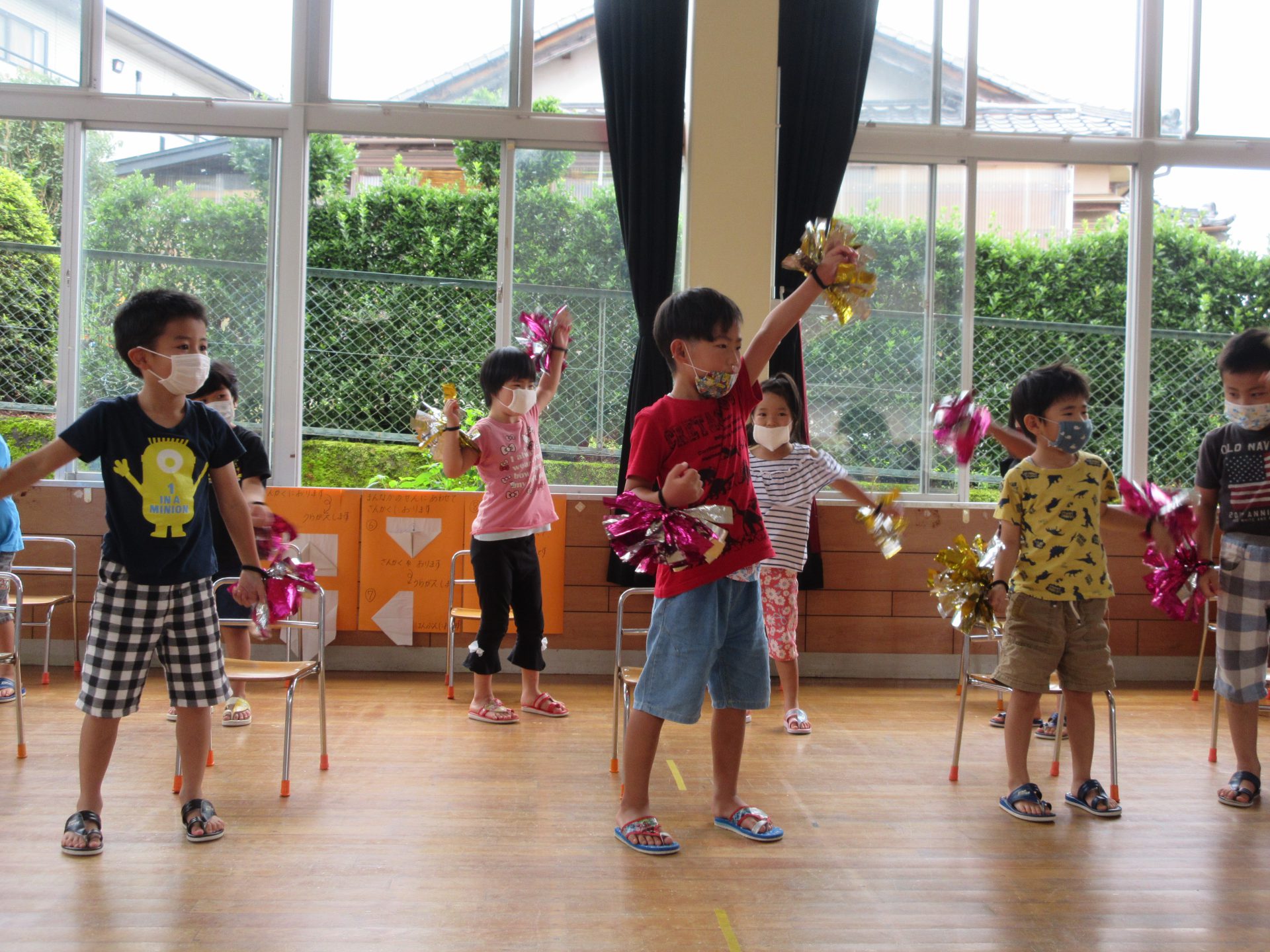 カレーができるまでの間、皆でお楽しみ会、それぞれのクラスで踊りや手遊びを披露しました。