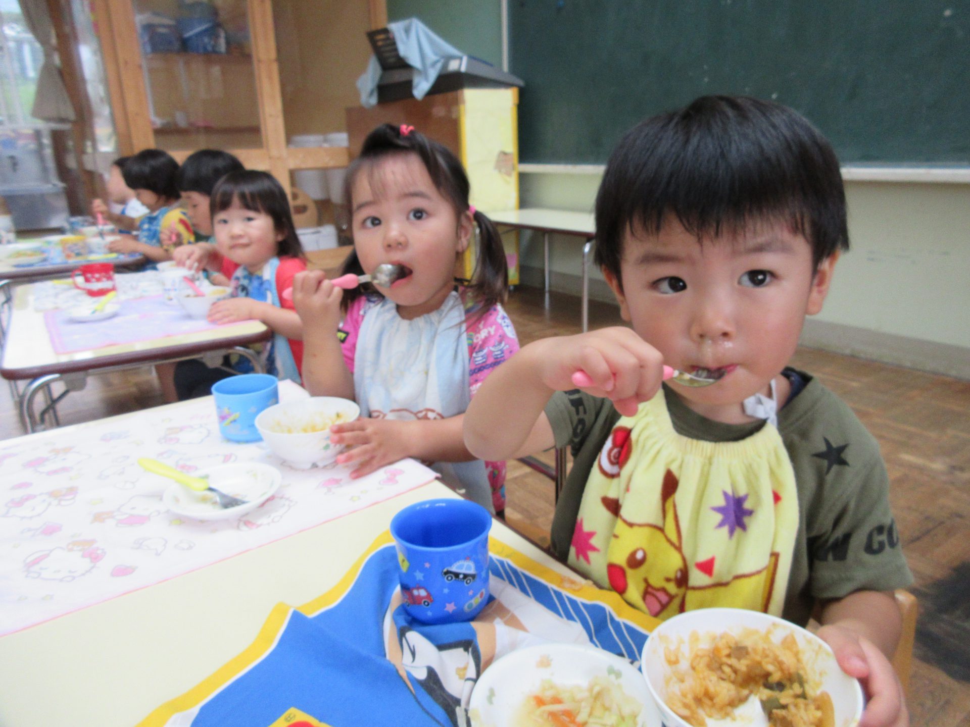 年長さんも、小さいお友達も大きな口でパクパク。皆いい顔です。