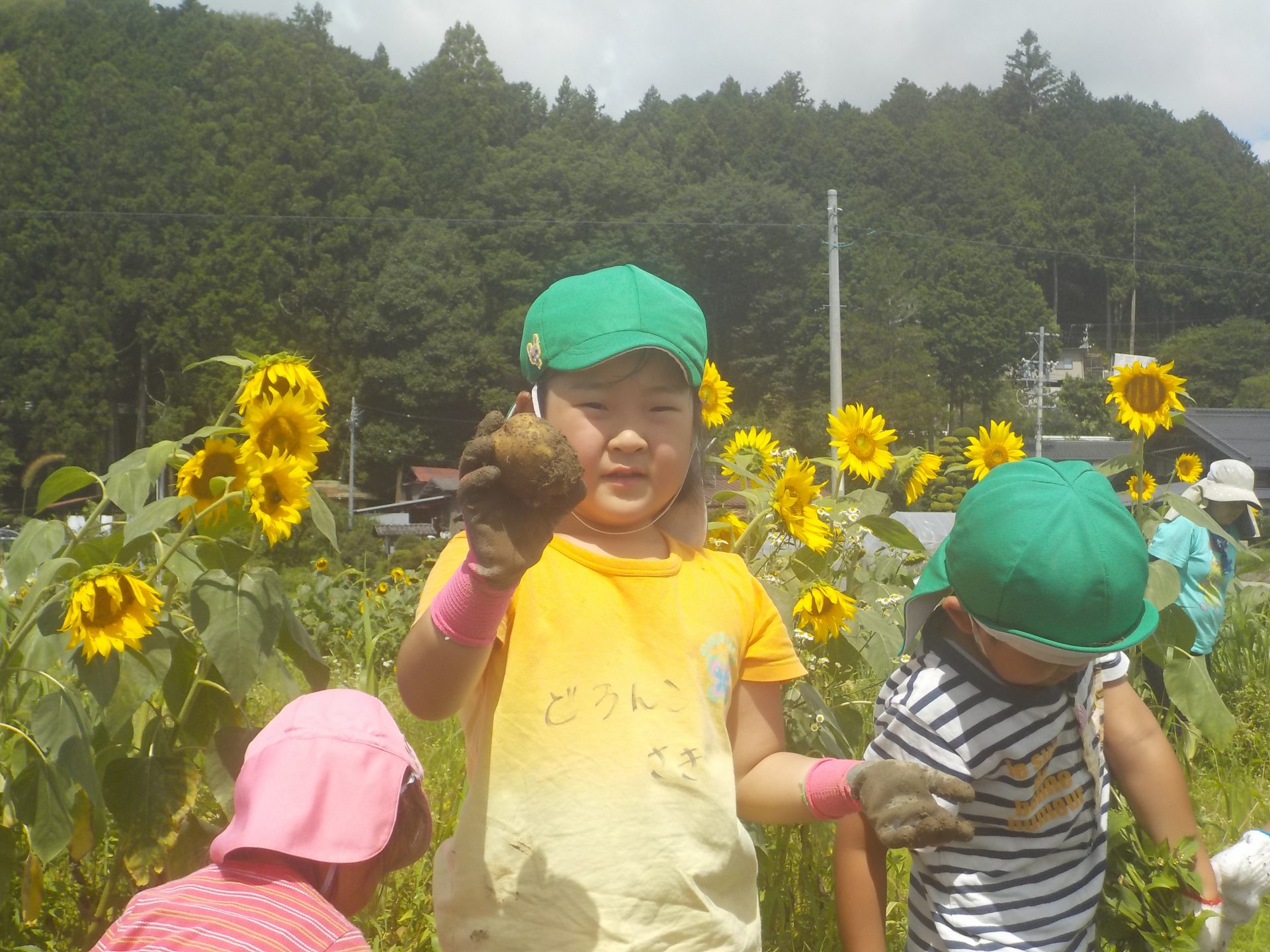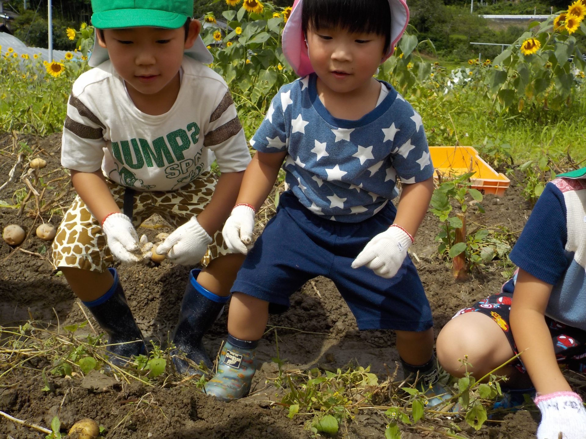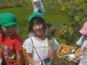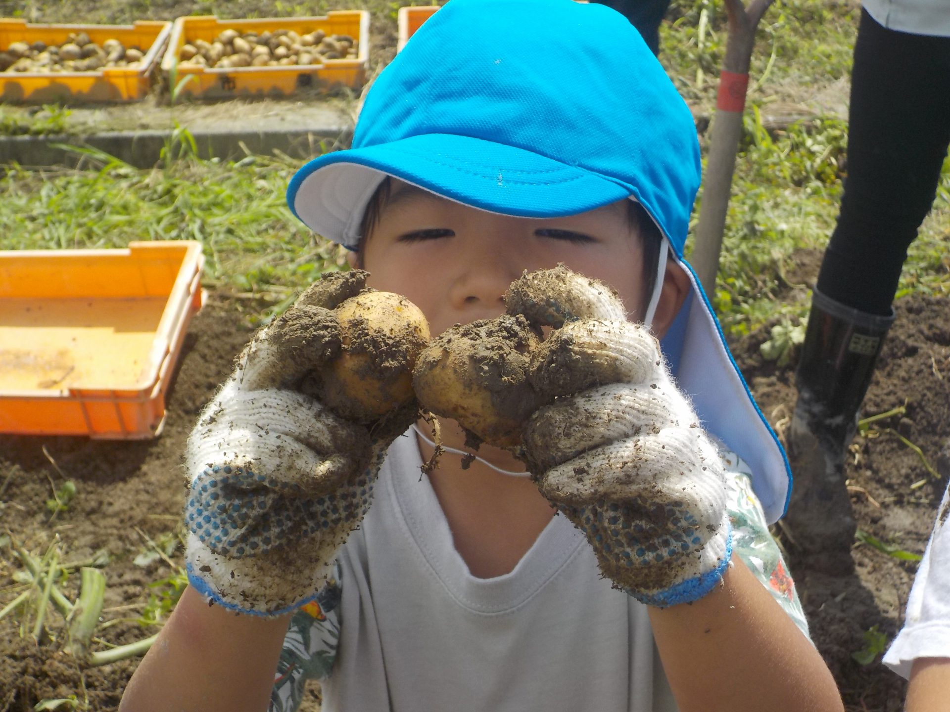 畑の中からたくさんのじゃがいもが顔を出した時の子ども達の嬉しそうな顔、次々出てくるじゃがいもを見てもっと掘ってみたいという意欲がわき、たくさんのじゃがいもを掘ることができた。