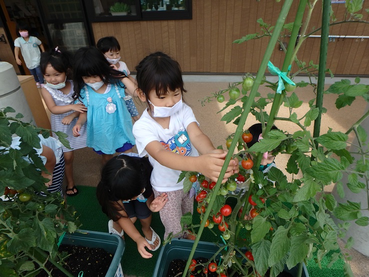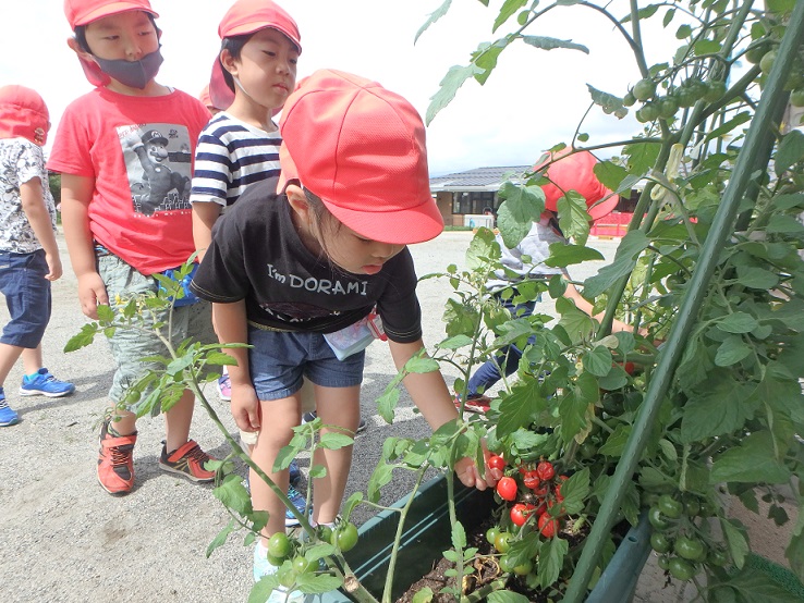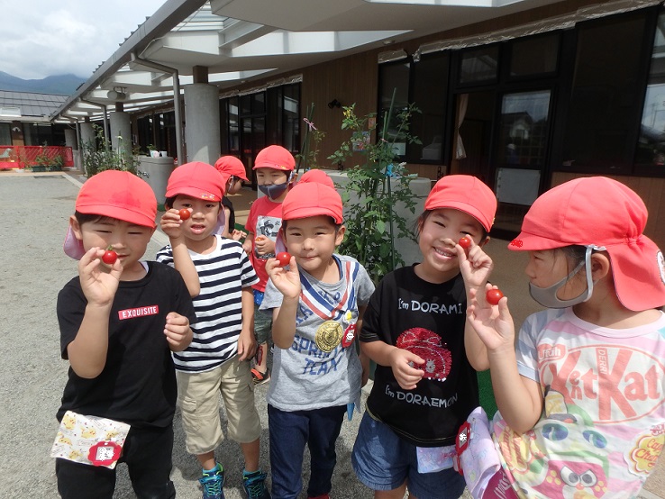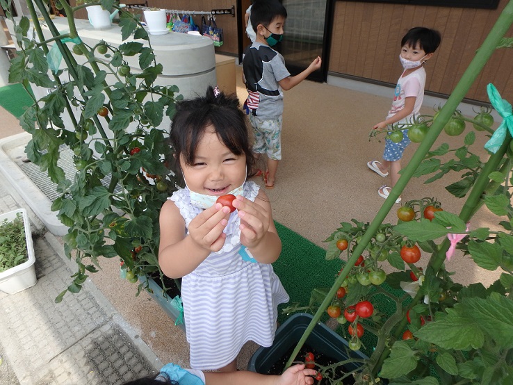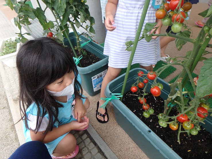「ほら見て!私の取ったトマト!!」