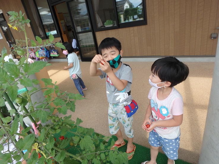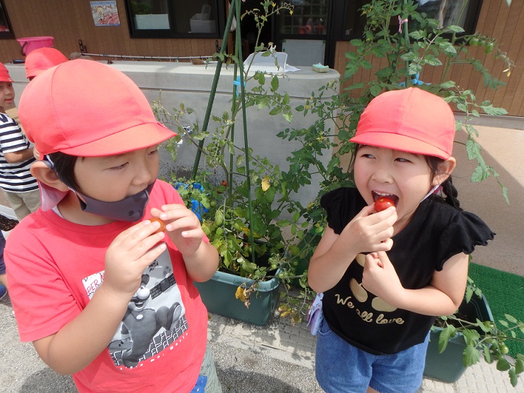 「もぎたてトマトいただきま~す!」