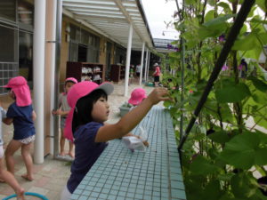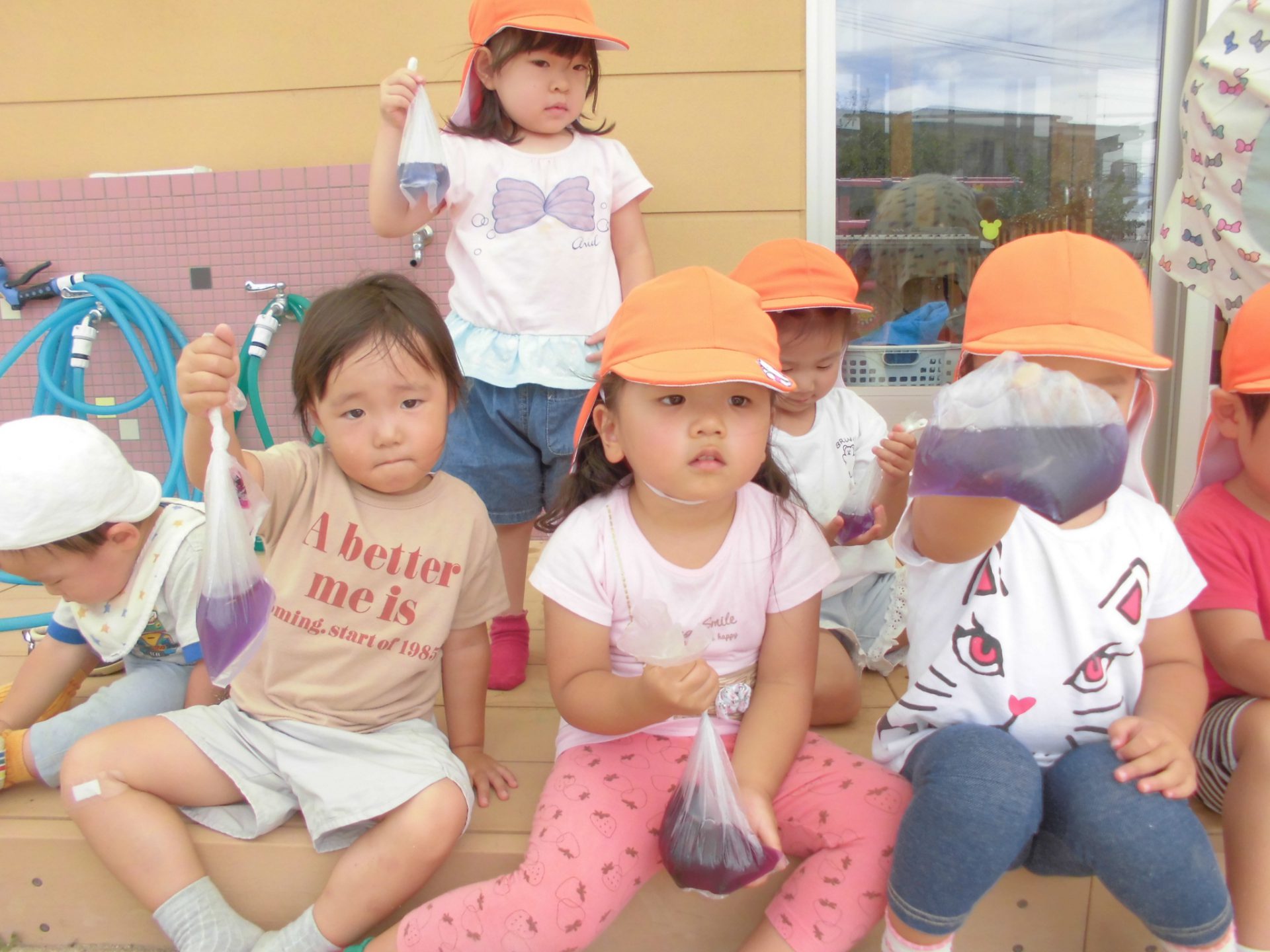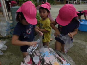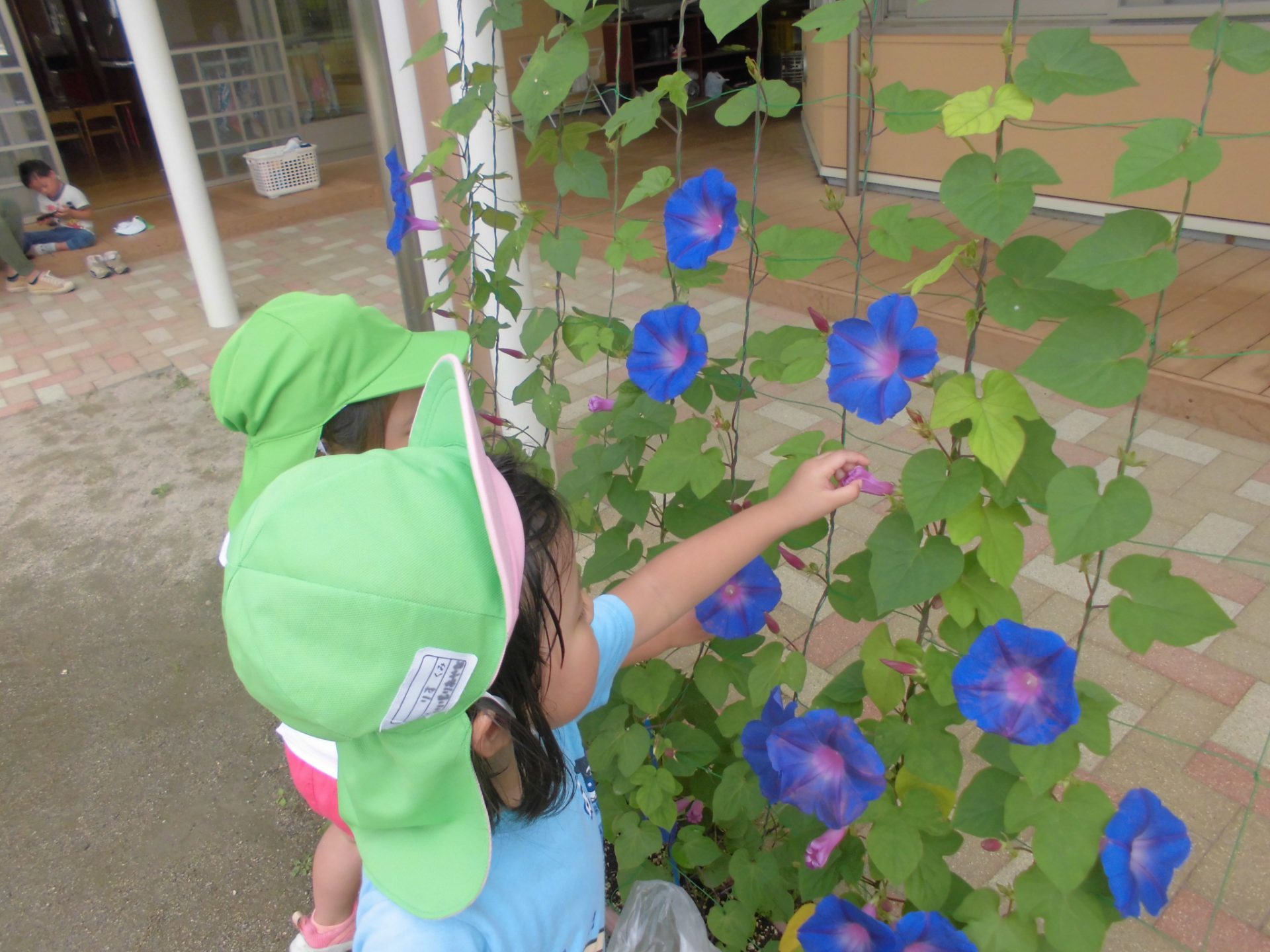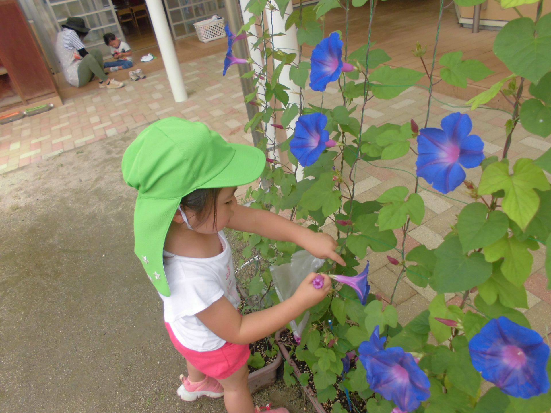 「これで色水できるんだよ。」と、しおれた花を取り始めます。