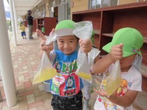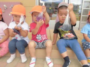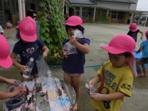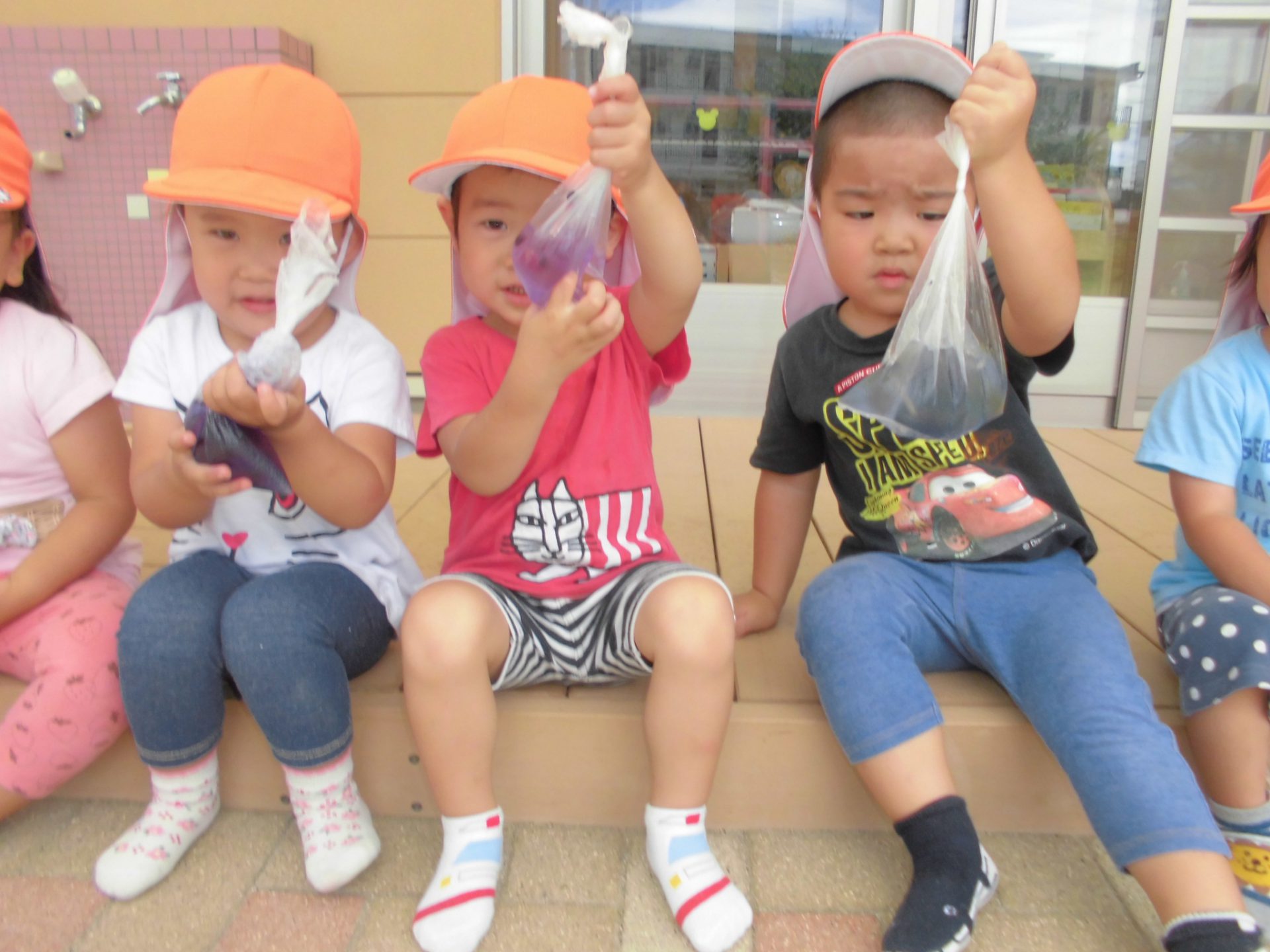 大きい組さんに刺激され、「私もおねえちゃんたちのみたいなの欲しい。」と、小さい子達も真似をして遊び始めました。