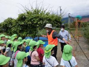 子どもたちは地域の方々に見守られながら、地域に育つ果樹に興味をもつきっかけをいただき、自分たちの育つ地域のことを知り、ブルーベリーの大きさや実のなり方も教えていただきました。大変貴重な経験をさせていただきました。