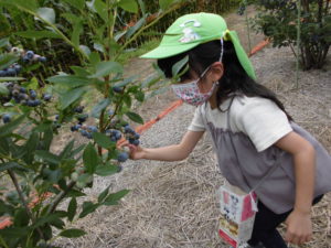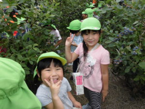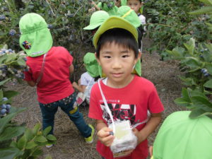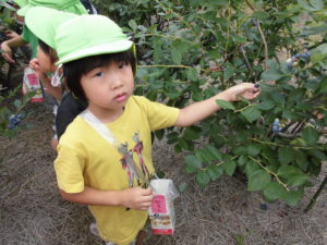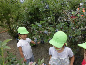 年長さんになったら、ブルーベリー狩りに行くことができる!と毎年楽しみにしている子どもたちです。久保田さんのご厚意によるもので、楽しく、おいしい経験をさせていただいています。