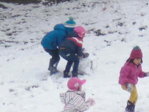 11月なのに、初雪。それだけで子どもたちは大喜び。