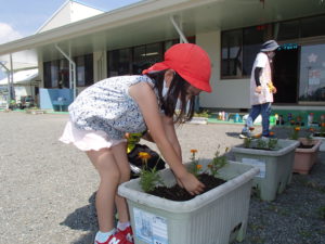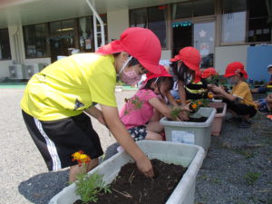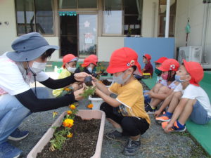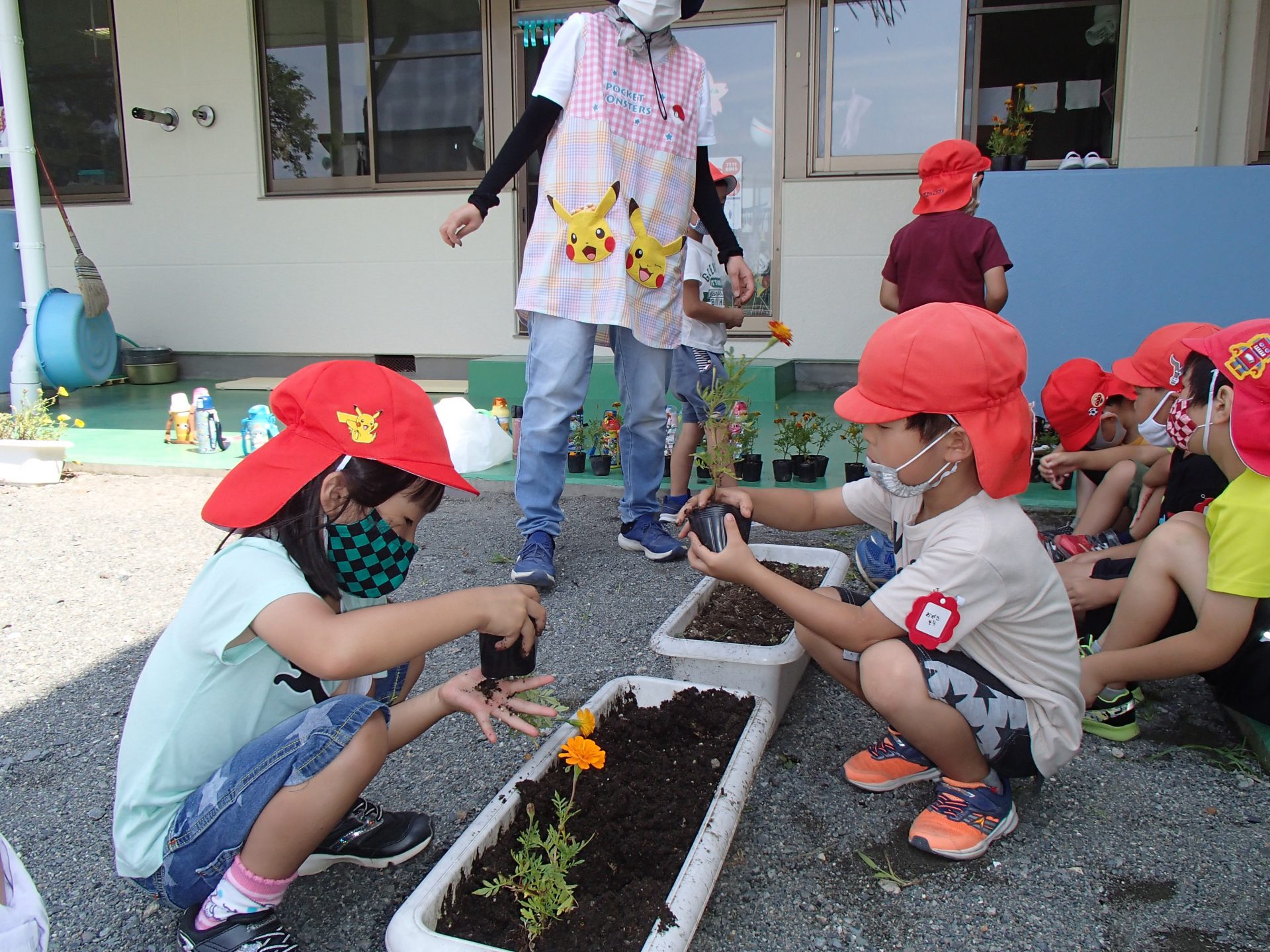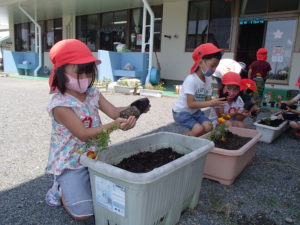 小学3年生の育ててきた花の苗を保育園で自分たちが育てきれいな花を咲かせる