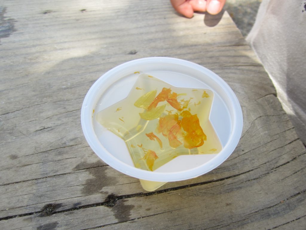 作った色水ですが綺麗でとっておきたいという声があったことと、また少し違った感触を味わって遊びたいと思い一晩凍らせてみました。