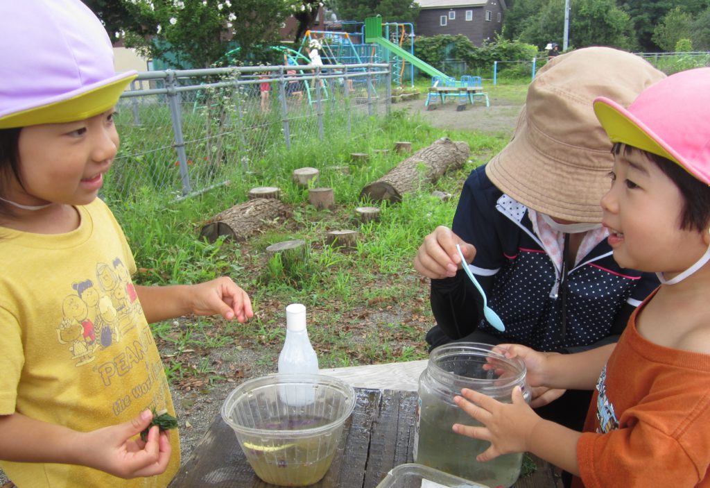 また、一人ひとり興味を持つこと、気づきが違うことも面白いと日々感じていますが、子どもたちがじっくり自分のペースで夏の自然と関わっていけるよう機会を作り、寄り添っていきたいと思います。