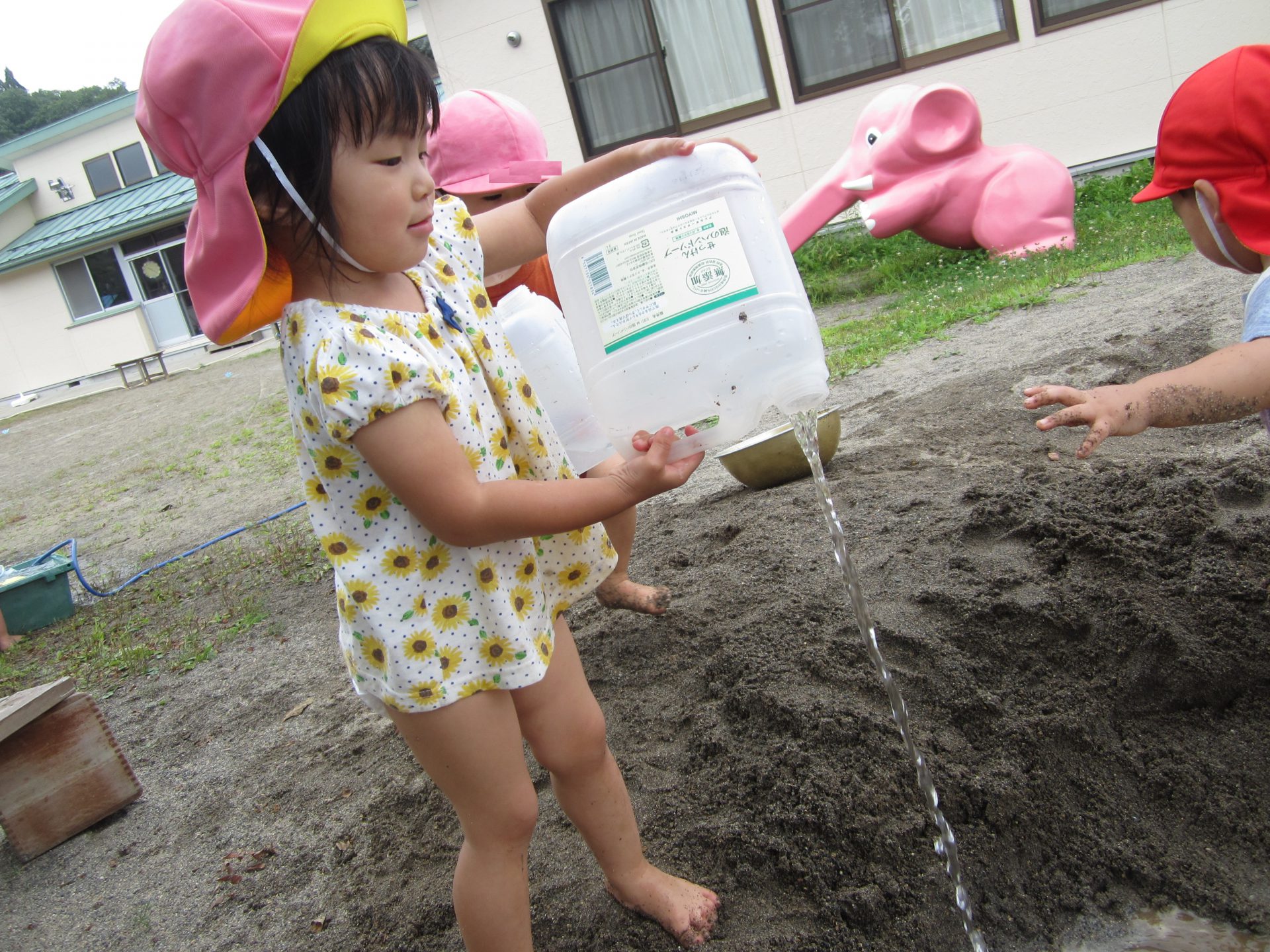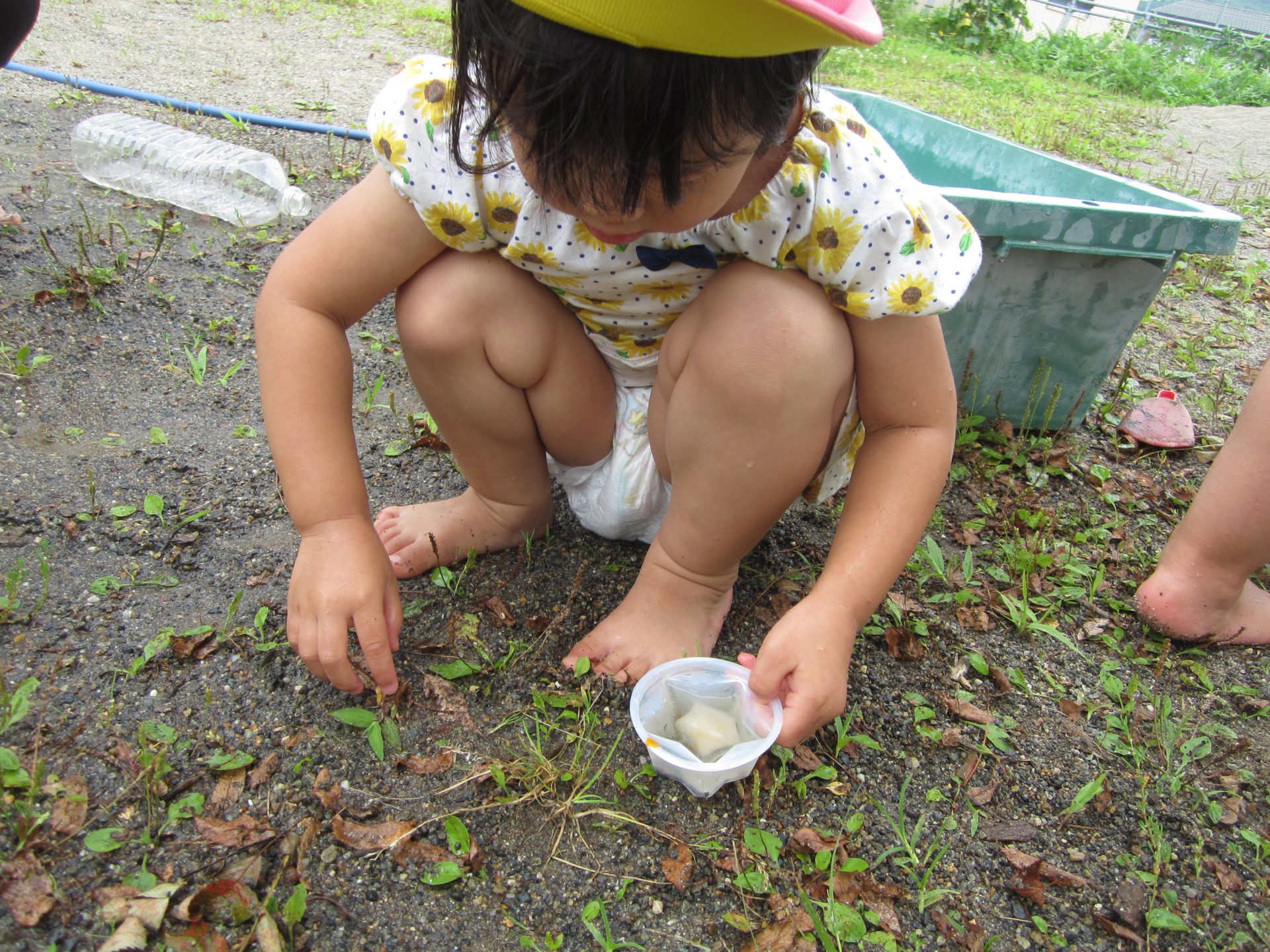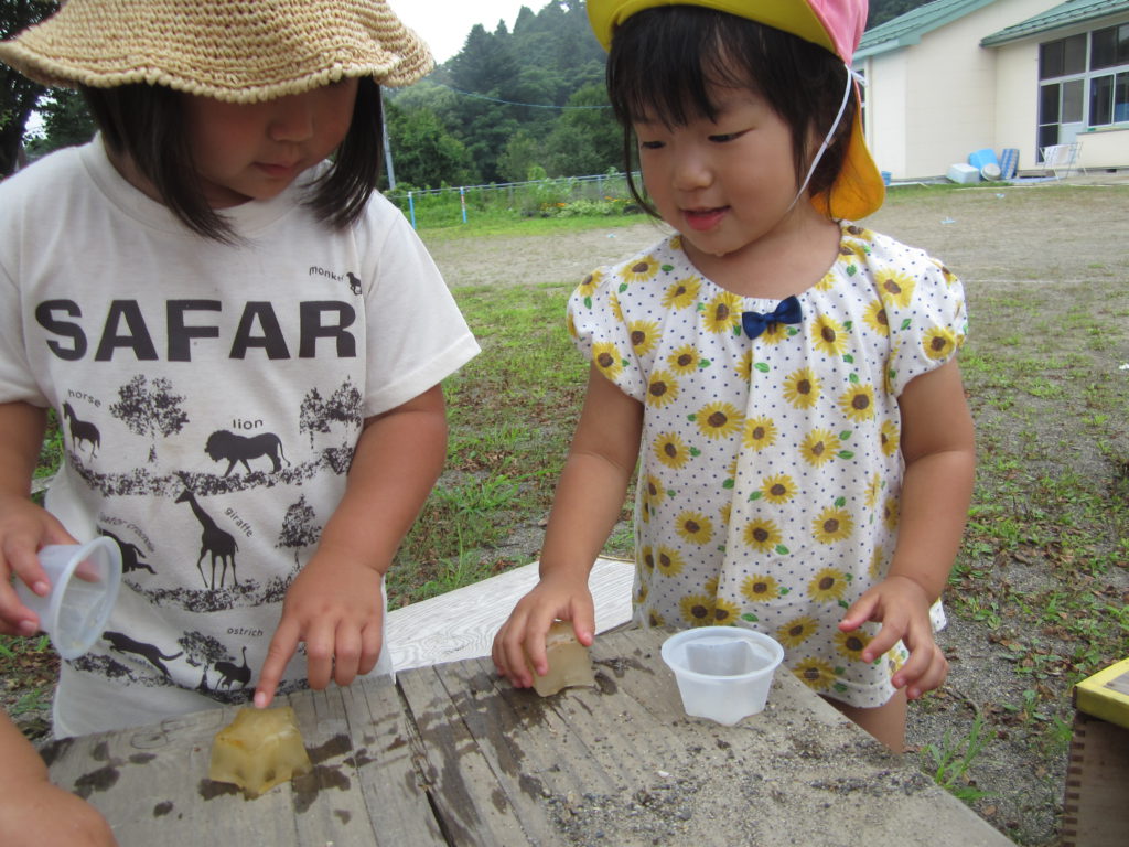 暑い日が続いていますが、この時期だからこそ、水や泥、氷遊びがよりいっそう楽しく、様々な不思議や気づきがある活動だと思います。